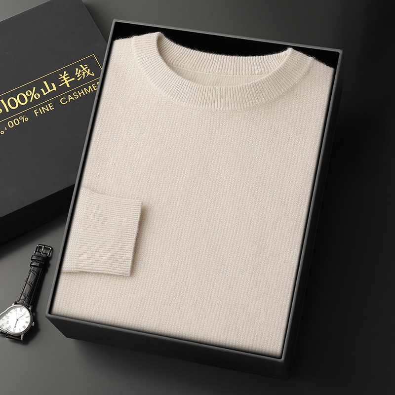重磅超厚圆领精纺100%纯山羊绒衫男冬季针织打底加厚保暖高端毛衣