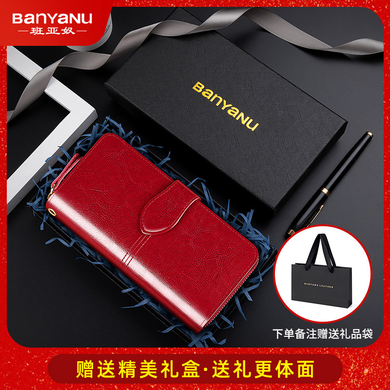 班亚奴头层牛皮长款钱包男真皮大容量多卡位带拉链2025新款手拿包