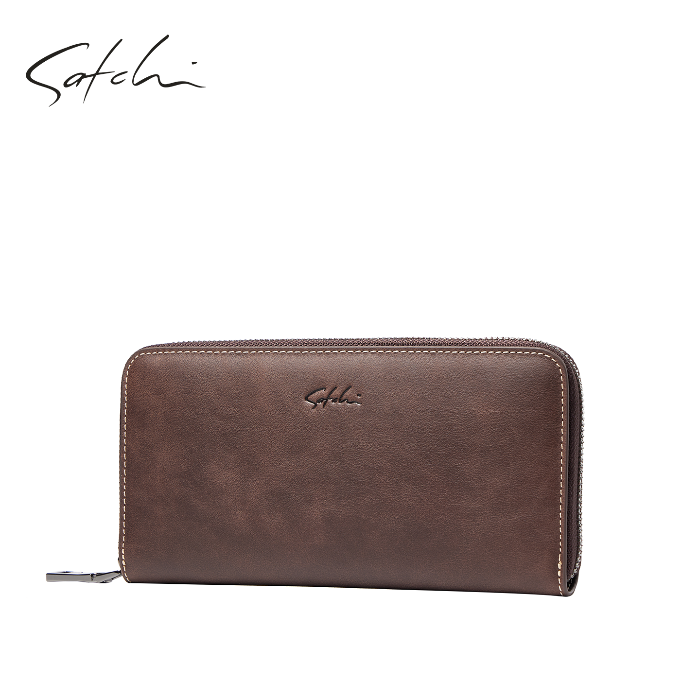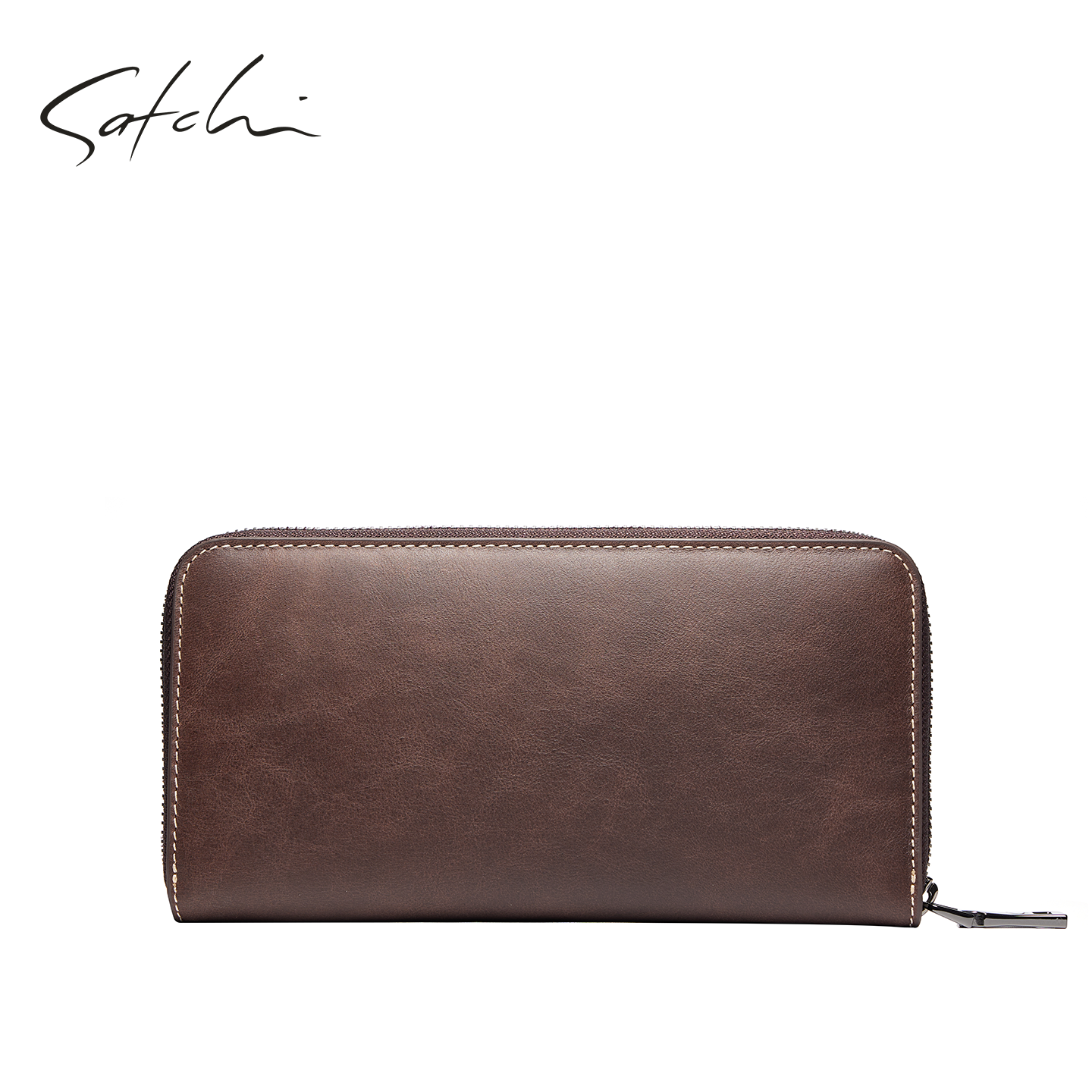 天猫SATCHI/沙驰钱包男士真皮商务高档多卡位手包复古时尚拉链手拿包
