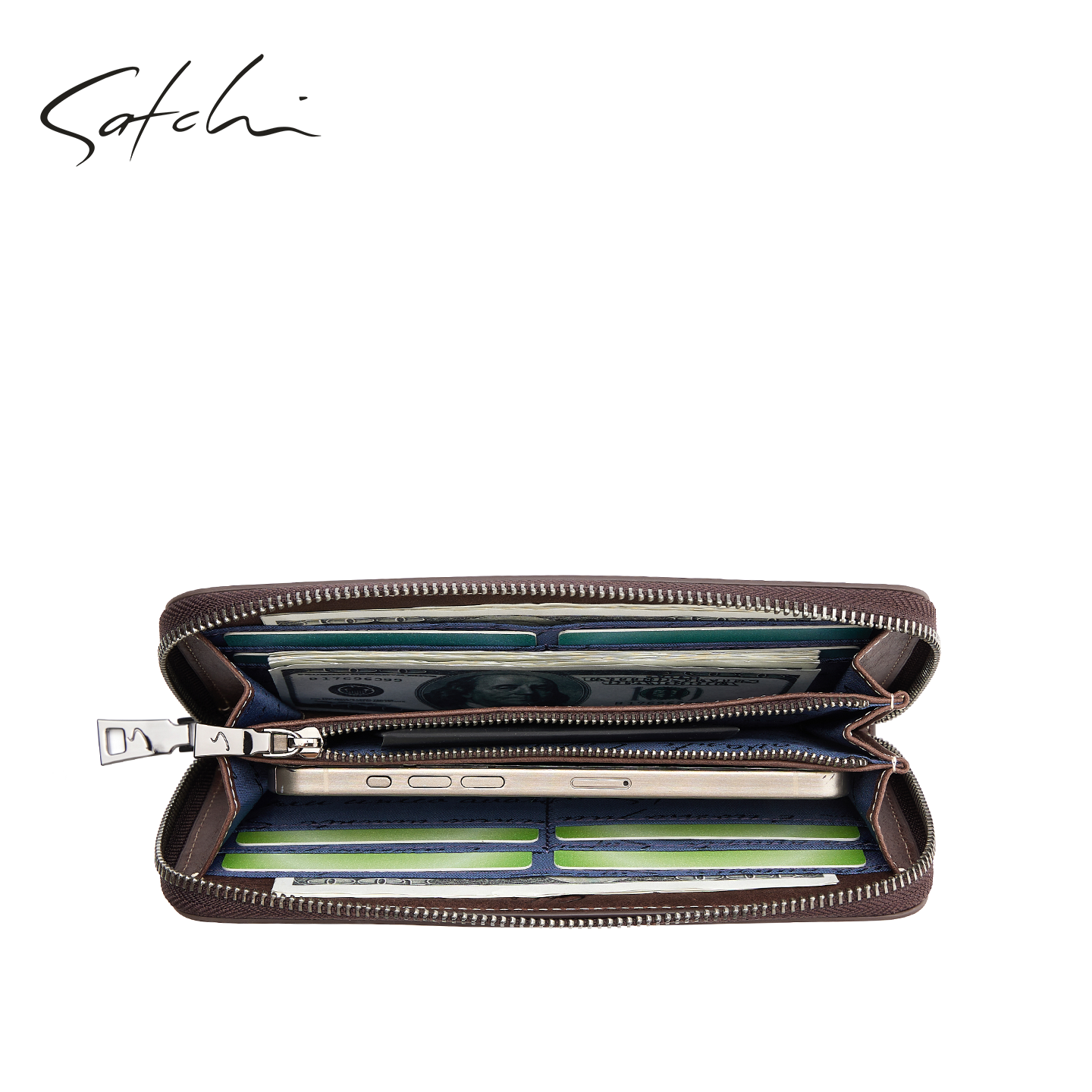 SATCHI/沙驰男士真皮商务钱包,融合复古时尚与实用设计,精选优质头层牛皮打造,质感细腻,经久耐用。多卡位布局合理,可容纳12张以上卡片,搭配拉链主袋,安全存放零钱、票据与手机,满足日常收纳需求。简约大气的外观配以精致金属拉链与品牌压纹标识,彰显低调奢华的商务格调。无论是职场通勤还是休闲出行,这款手拿包都能轻松驾驭,展现男士成熟稳重又不失潮流品味的型格魅力。SATCHI以匠心工艺诠释高端皮具,是追求品质生活的精英男士的理想之选。