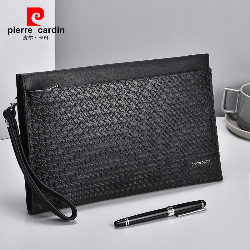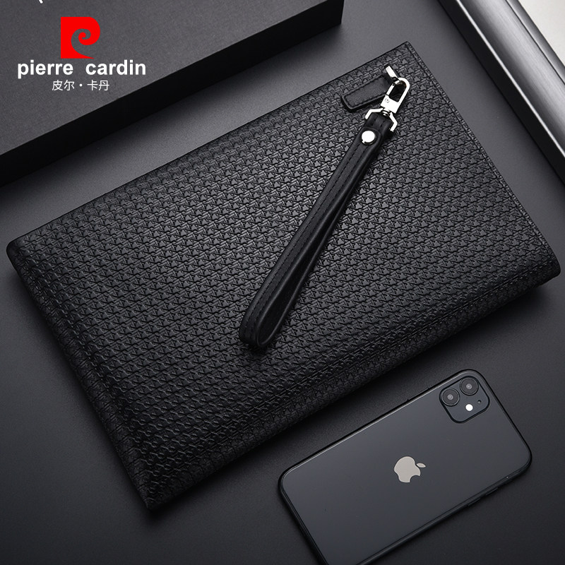 天猫皮尔卡丹男士手包真皮信封包休闲男款软牛皮手拿包时尚手抓包夹包