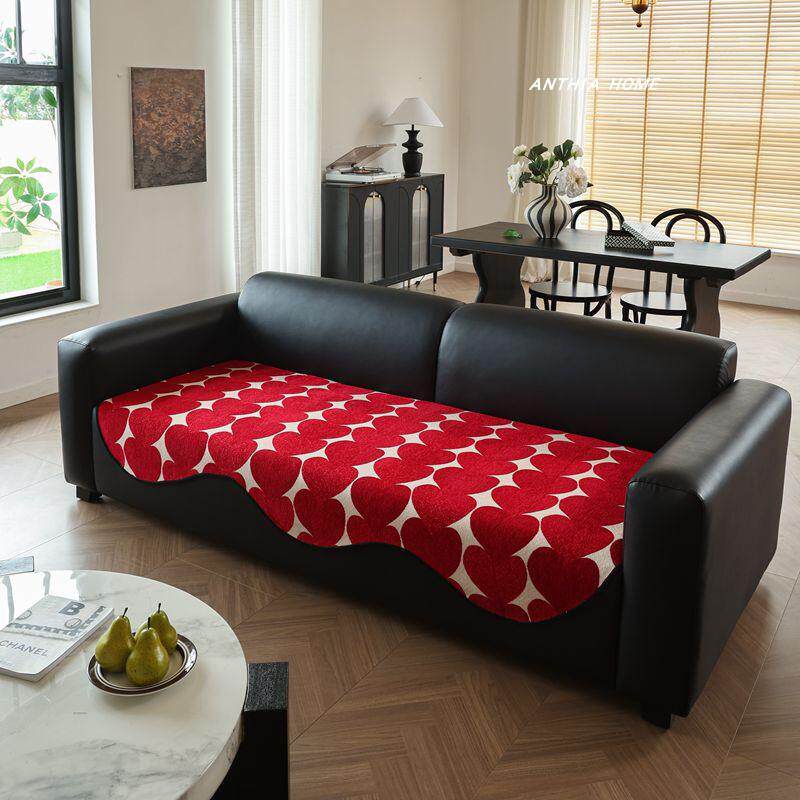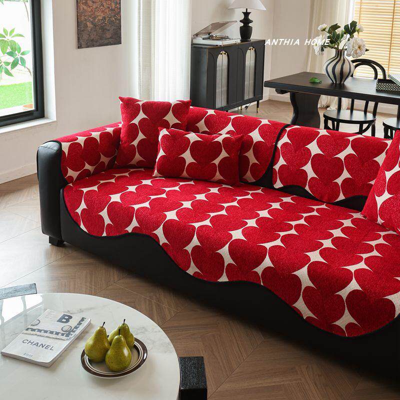 淘宝红色爱心异形沙发垫巾秋冬季喜庆2024新款四季通用布艺皮防滑坐垫