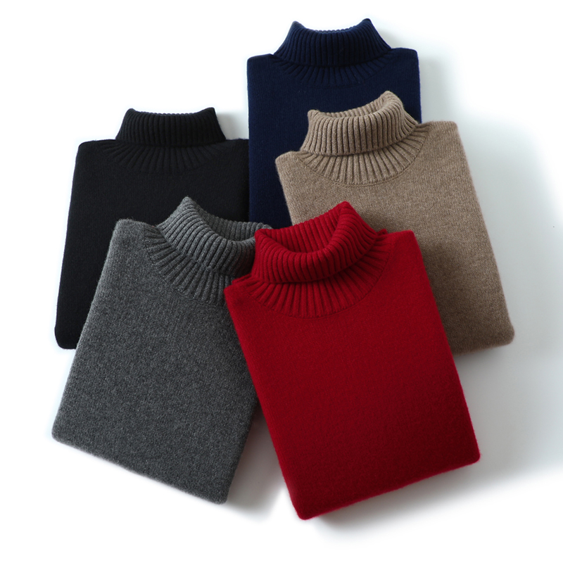 冬季新款加厚100%纯山羊绒衫男士半高圆领毛衣男装宽松针织打底衫
