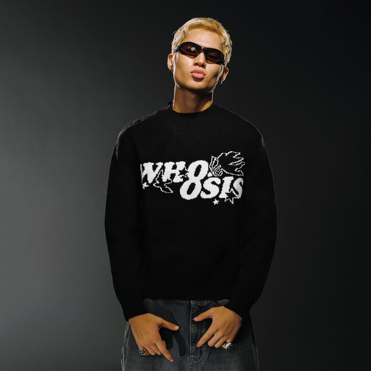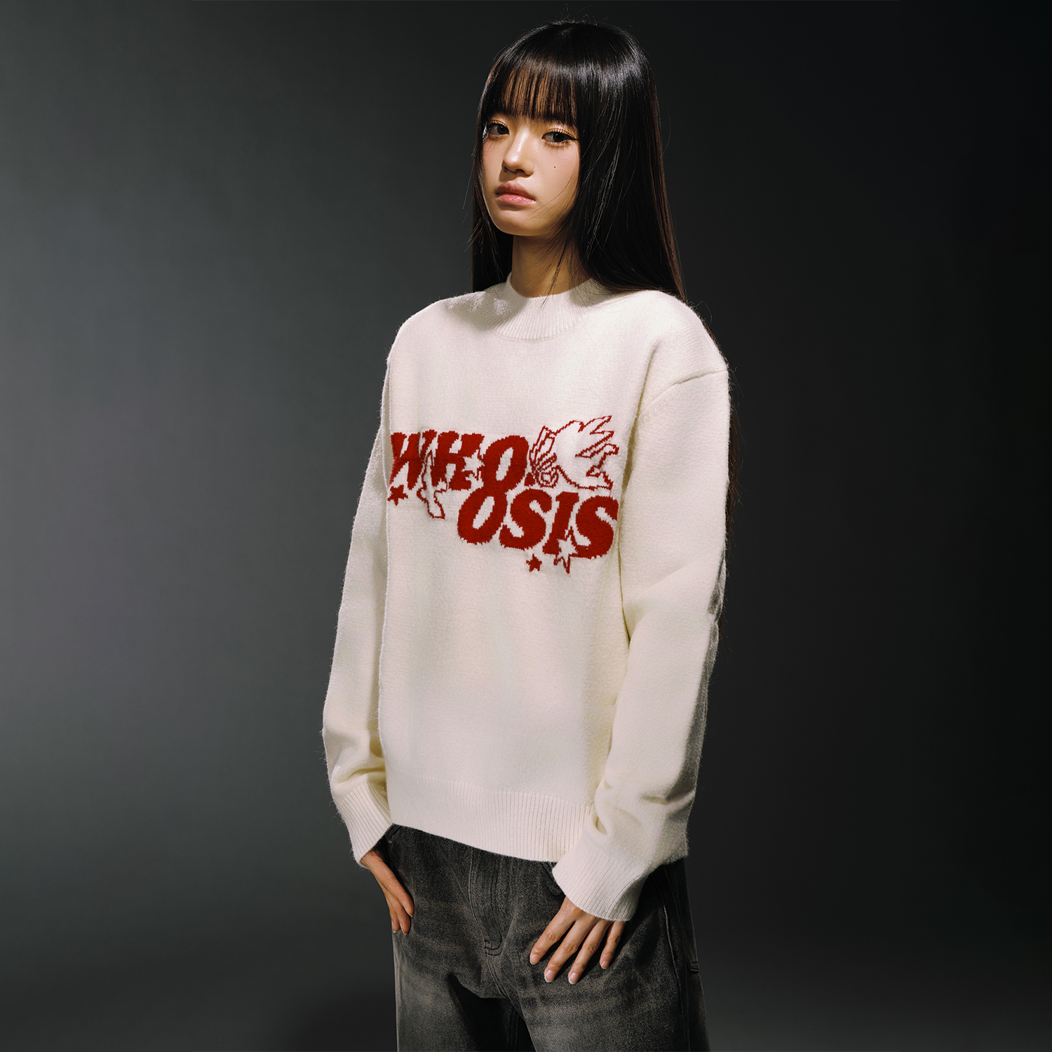 淘宝WHOOSIS(不知其名)丘比特珠片纱提花毛衣秋冬保暖简约男女宽松