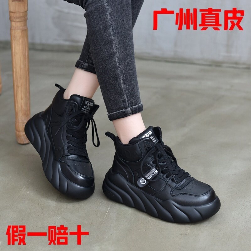 淘宝头层牛皮运动休闲鞋系带厚底老爹鞋女2025秋冬羊毛高帮女鞋马丁靴