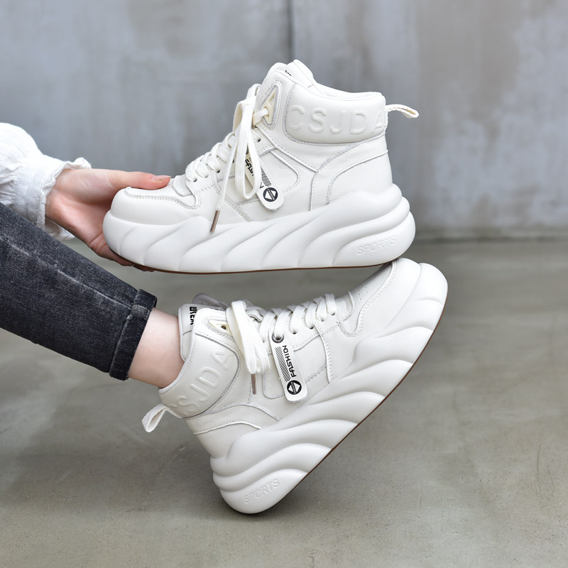 2025秋冬新款头层牛皮运动休闲鞋,融合时尚与舒适,专为现代女性打造。采用优质头层牛皮材质,质感细腻、耐磨透气,搭配内里柔软羊毛设计,保暖舒适,适合秋冬季节。厚底老爹鞋造型复古百搭,高帮马丁靴款式修饰腿型,增强整体穿搭层次感。系带设计稳固贴合,穿脱便捷,兼顾实用与美观。无论是搭配牛仔裤、裙装或休闲裤,都能轻松驾驭,展现个性潮流态度。这款女鞋集保暖、舒适与时尚于一体,是秋冬衣橱的必备单品,为都市女性带来全天候的优雅与自信。