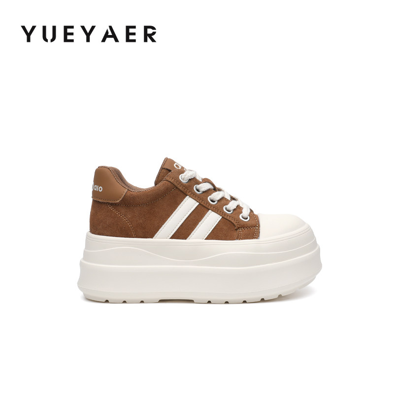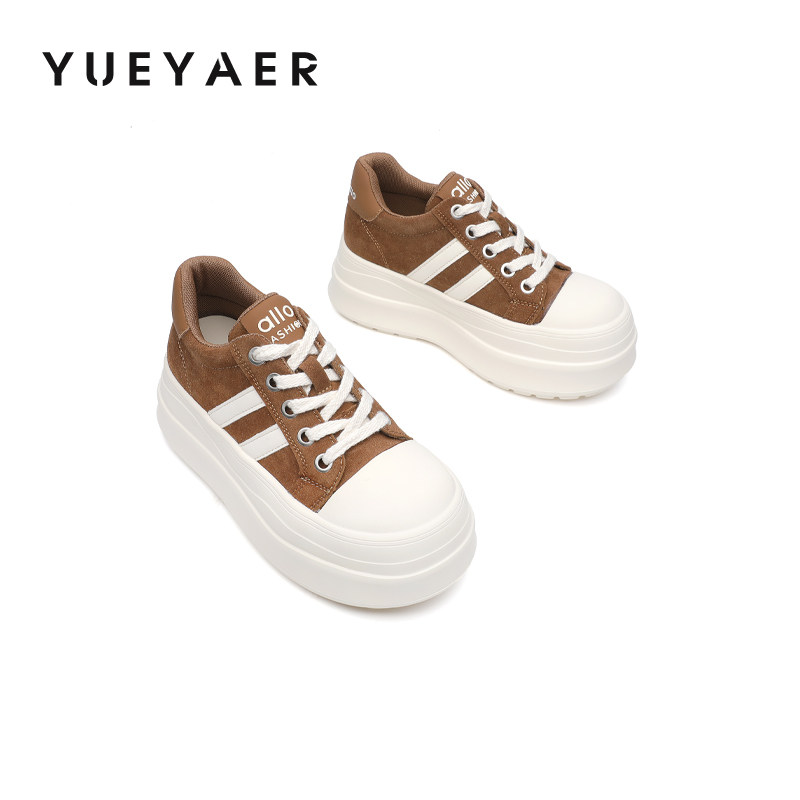 天猫月芽儿2025春秋新款厚底休闲板鞋女增高运动鞋系带轻便小白鞋板鞋