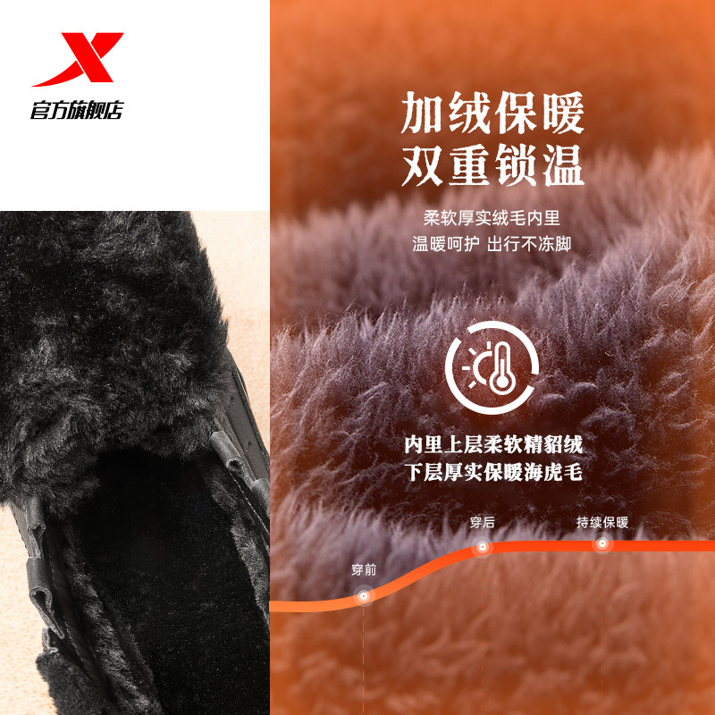 淘宝特步游牧棉鞋女子冬季大棉情侣休闲鞋厚底增高加绒保暖运动鞋子男