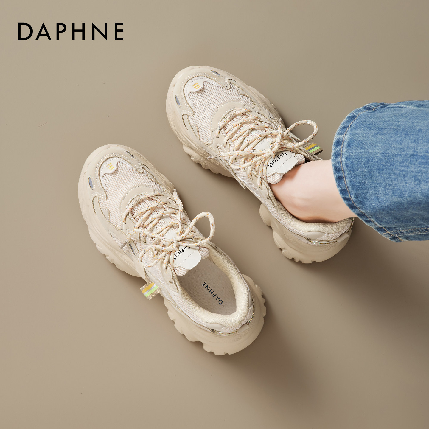 天猫达芙妮厚底老爹鞋女2026春季新款百搭小白鞋增高小个子休闲运动鞋