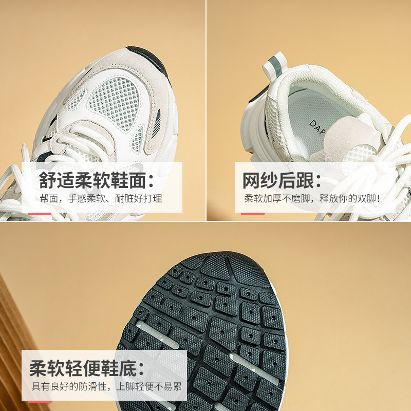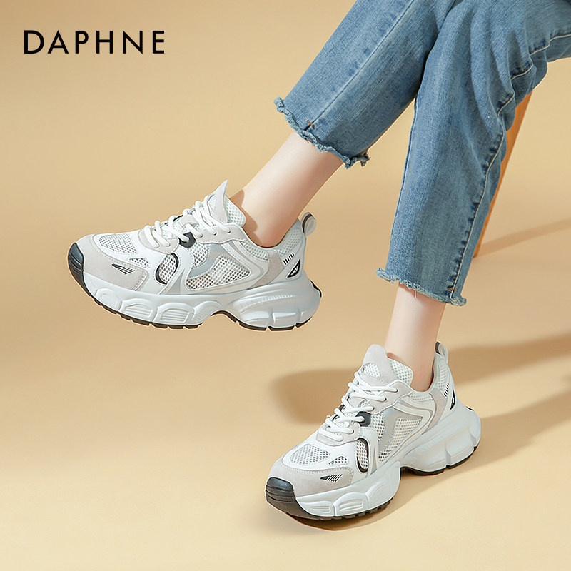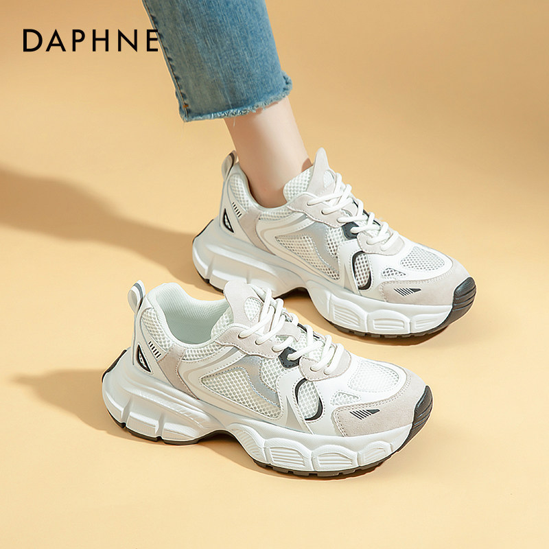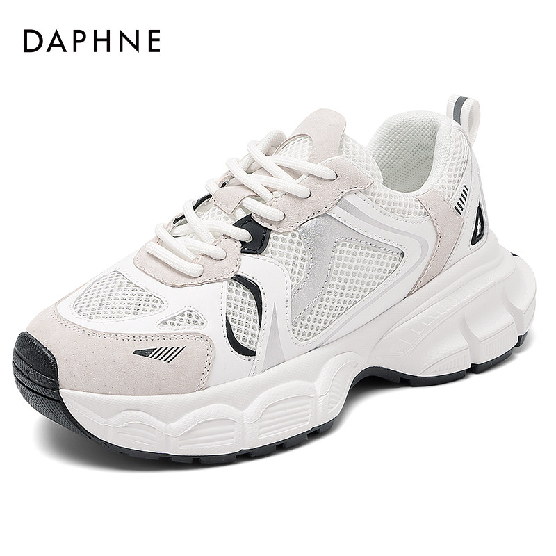 天猫达芙妮白色网面老爹鞋女2025新款秋冬厚底休闲透气轻便运动小白鞋