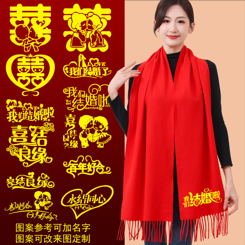 淘年会红围巾定制logo刺绣u可绣字公司企业活动中国红福字围巾红围