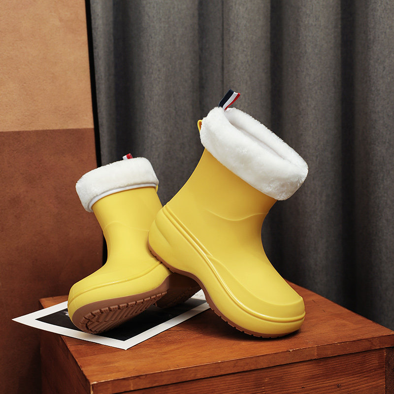 EVA泡沫加绒雨鞋女保暖防滑男士轻便一体鞋加厚冬季雨靴防水棉鞋