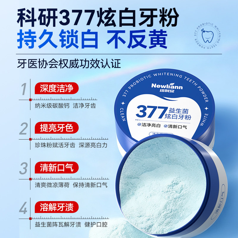 天猫377美白洁牙粉去黄清洁污垢溶解牙石洗白黄牙渍益生菌除口臭神器
