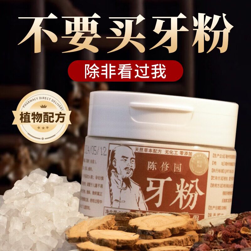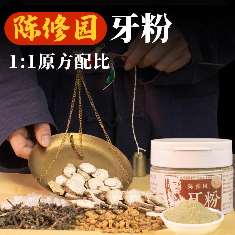 天猫陈修园牙粉旱莲固茶卡大青盐齿中药材官方旗舰店正品松动洁刷牙粉