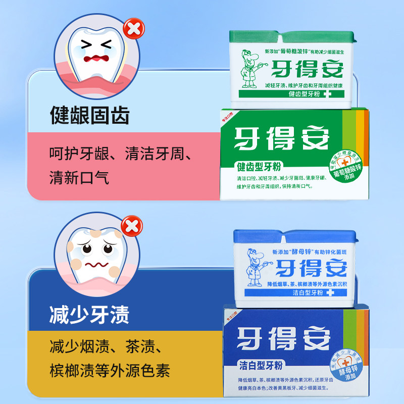 牙得安牙粉呵护牙龈减轻牙渍牙黄牙菌斑洁牙粉组合100g【无礼盒】