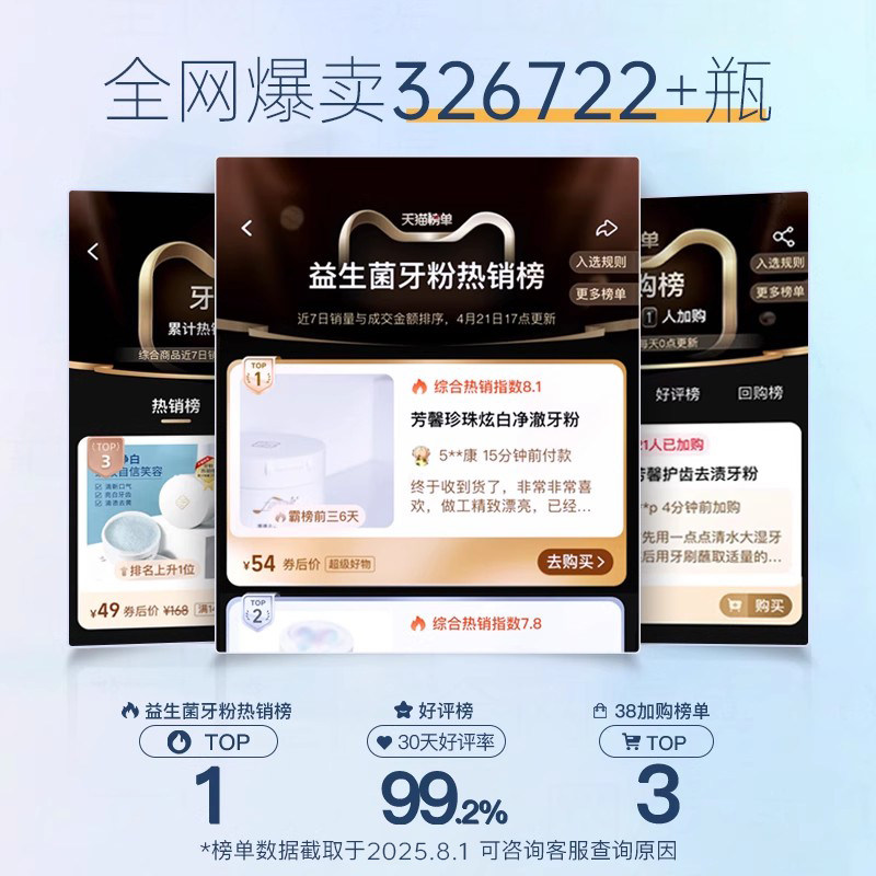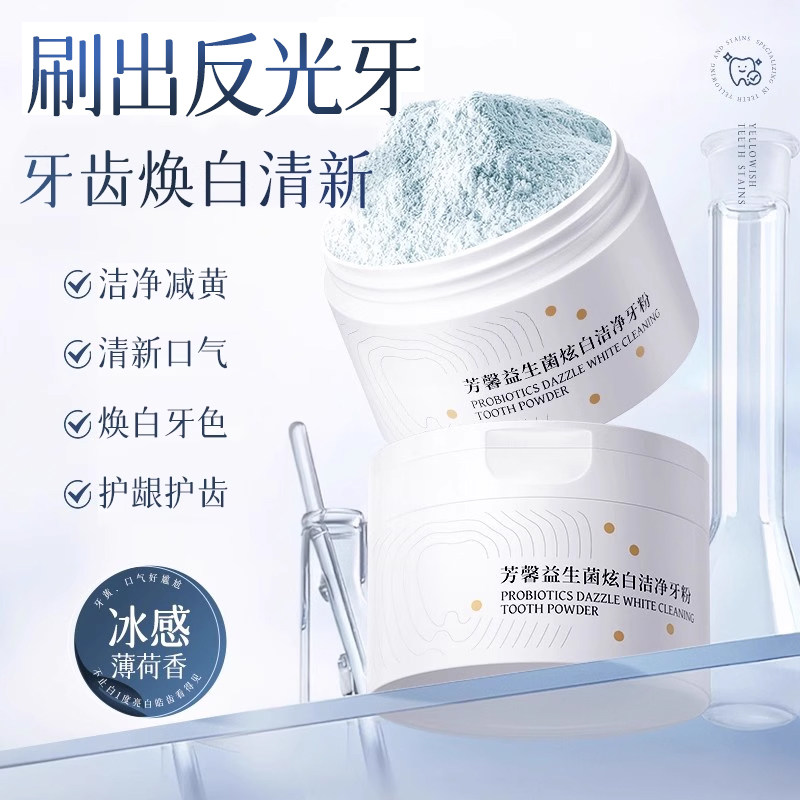 天猫芳馨洁牙粉焕白减黄亮美炫白牙齿益生菌净澈刷牙粉旗舰店官网正品