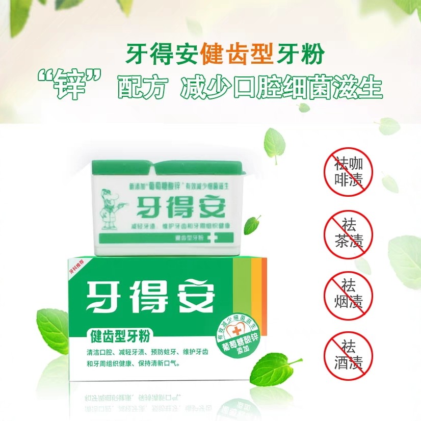 牙得安官方店植物健齿刷牙粉洗牙粉护牙龈牙周祛牙渍牙黄52g