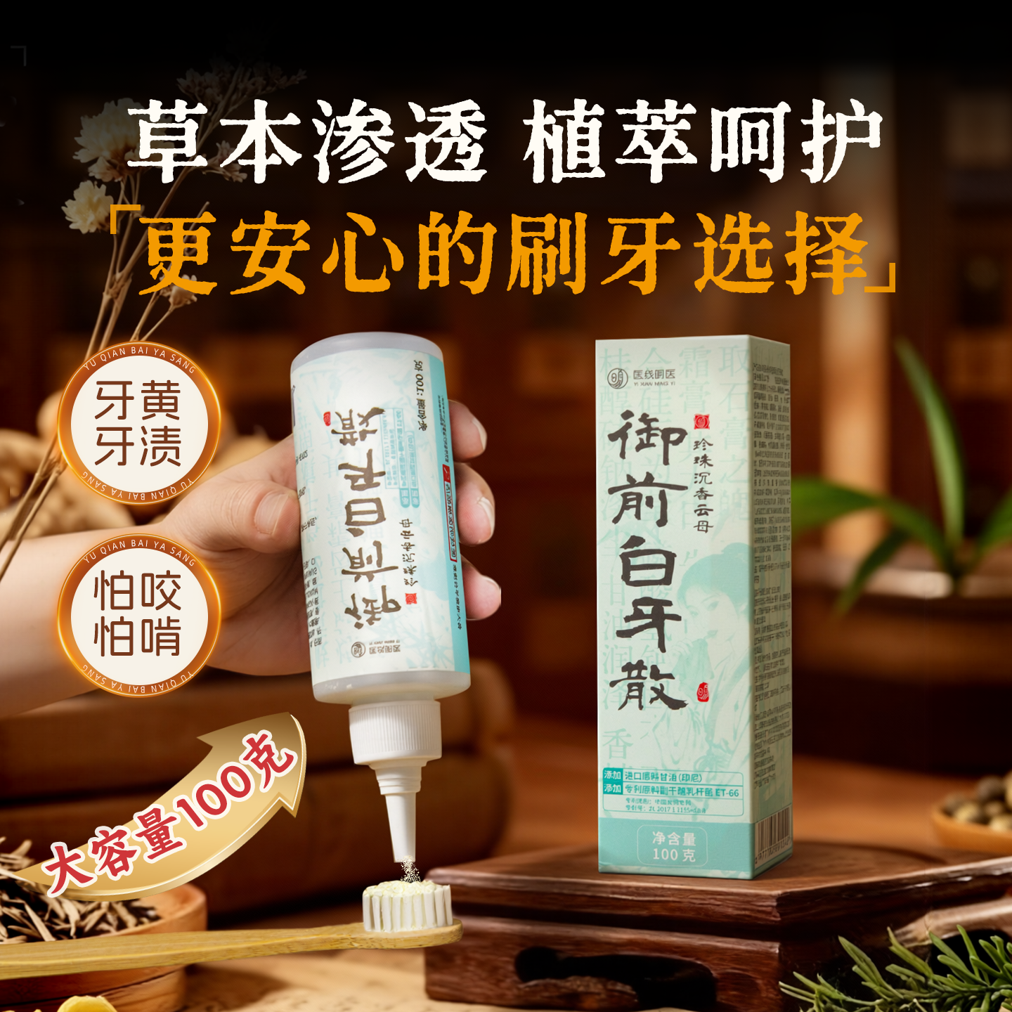 天猫草本牙粉牙黄清洁美牙齿白污垢御前白牙粉散碳酸钙青盐炮附刷牙粉