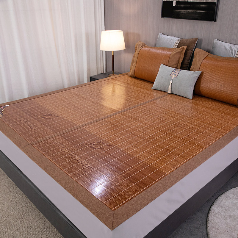 冰美人夏季高档木纹竹凉席三件套,专为1.5米与1.8米床型设计,采用优质天然竹材精工打磨,表面呈现细腻木纹质感,兼具美观与清凉。双面可用设计,一面光滑竹面,一面柔韧藤面,四季皆宜,满足不同季节需求。席面平整紧密,透气排湿,久用不变形,带来清爽舒适的睡眠体验。可折叠收纳,节省空间,方便清洁与携带。搭配同系列枕套,整体风格雅致,是夏日家居的理想选择。冰美人凉席,以匠心工艺诠释自然凉感,让酷暑夜晚也能安享宁静好眠。