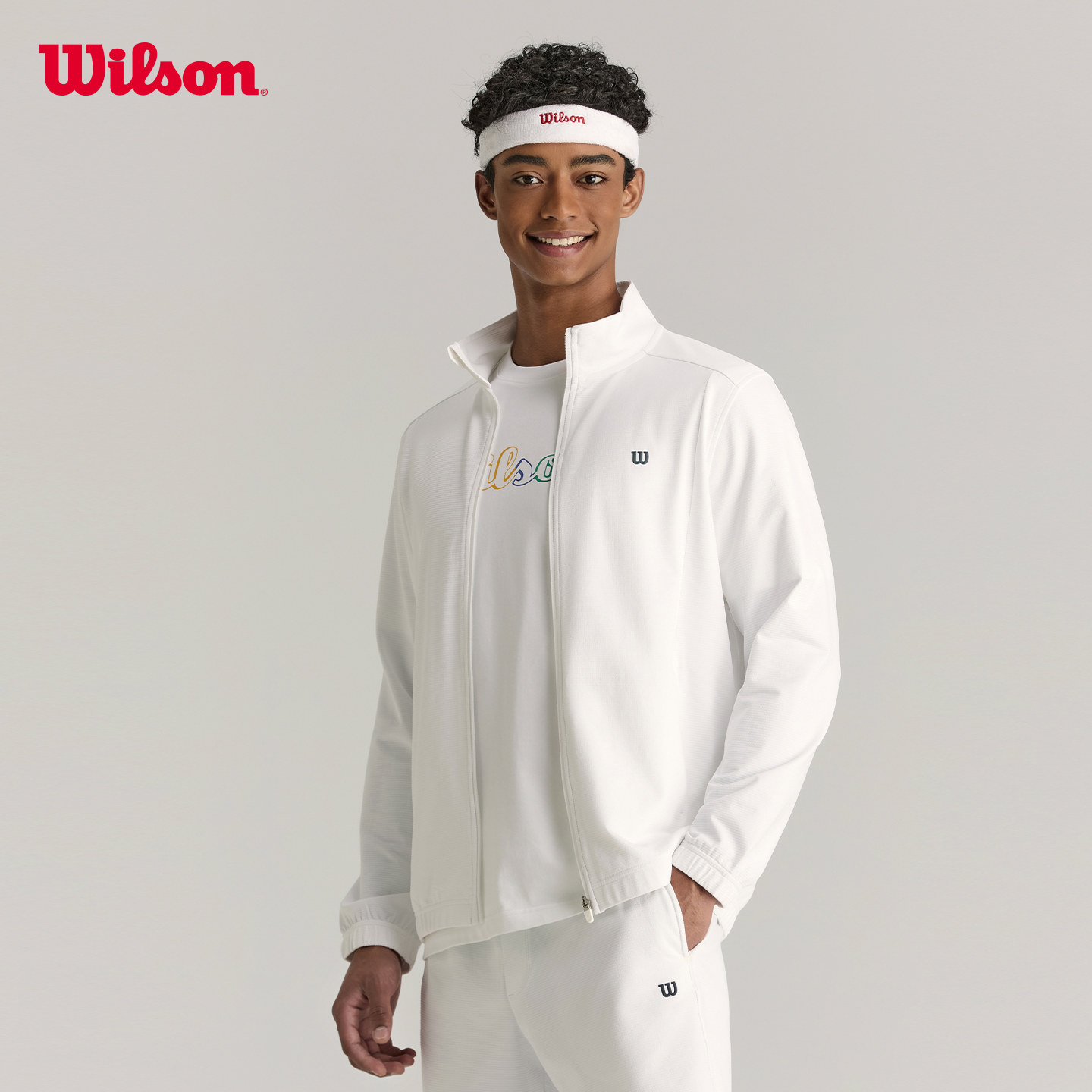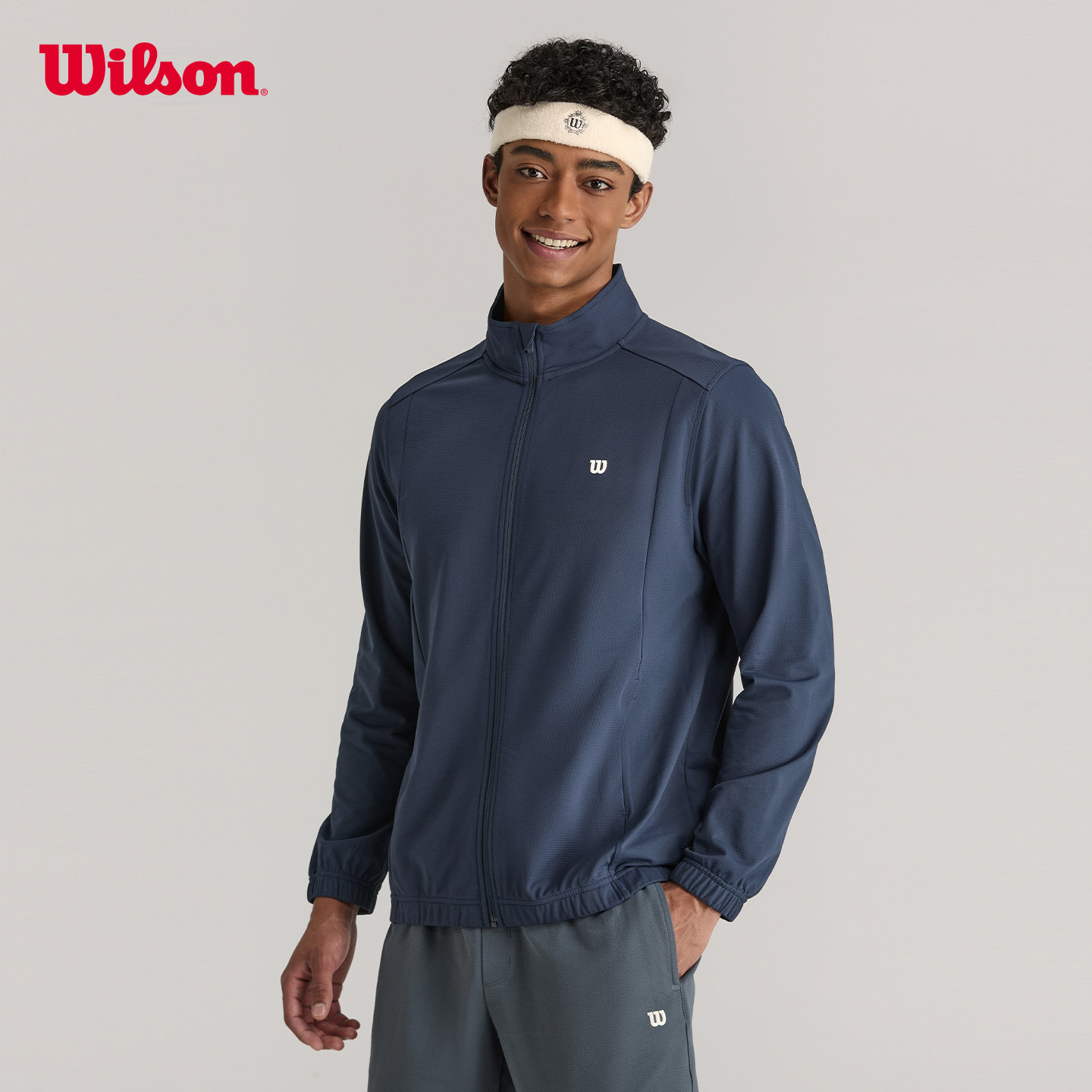 Wilson威尔胜官方26年春季新款男士磨毛立领网球运动针织上衣外套
