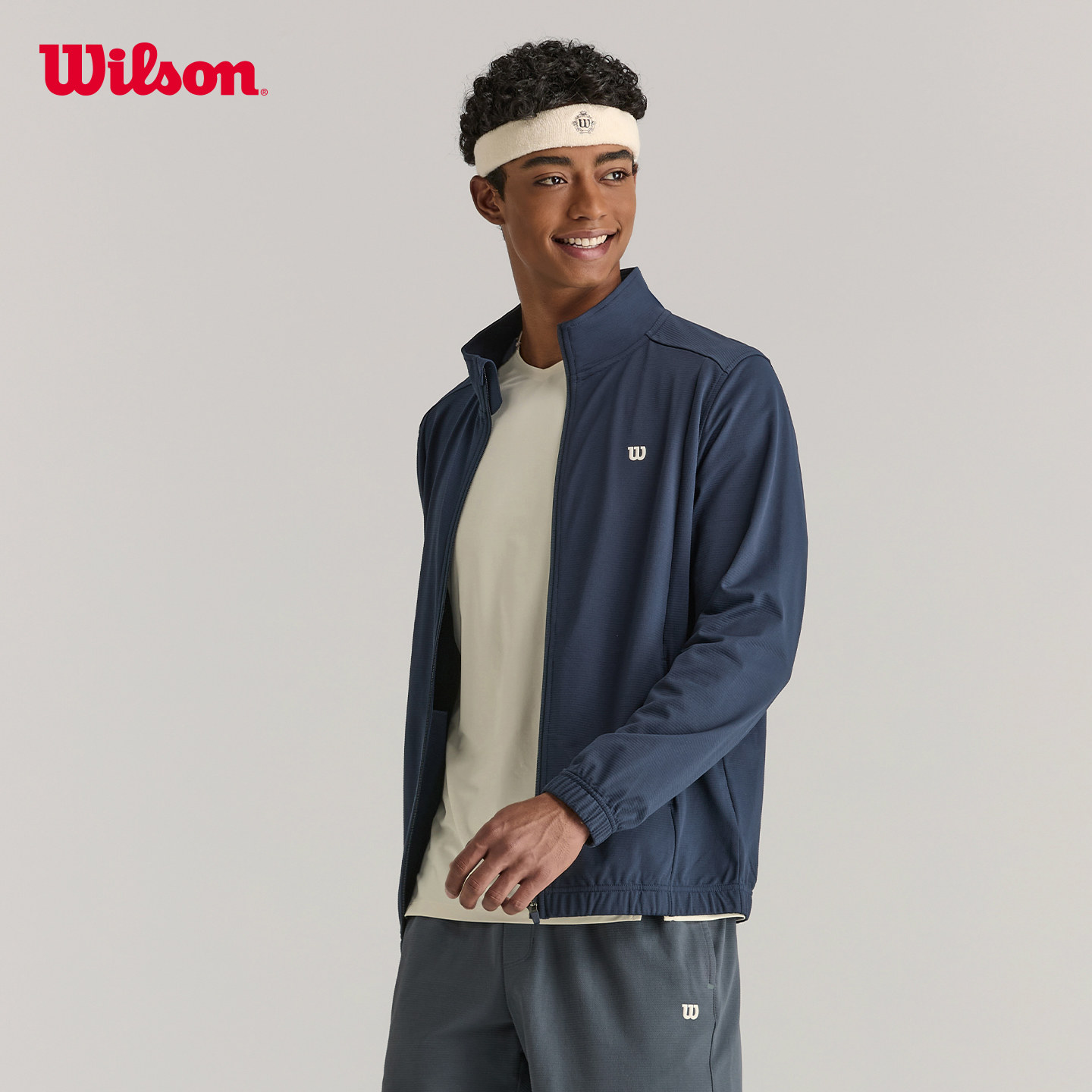 天Wilson威尔胜官方26年春季新款男士磨毛立领网球运动针织上衣外套
