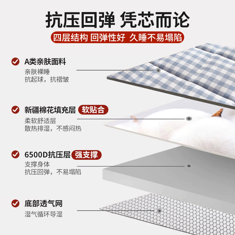 天新疆棉花床垫纯棉面料软垫学生宿舍单人垫被铺家用卧室床褥子棉垫