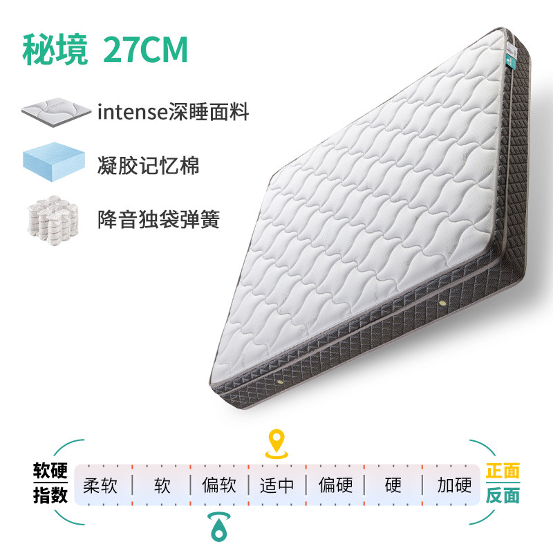 【秘境】雅兰凝胶床垫,融合科技与舒适,打造理想睡眠体验。采用加厚记忆棉,贴合人体曲线,有效缓解压力点;七区护脊设计,精准承托脊椎自然弧度,守护整夜健康睡眠。创新双睡感设计,一面偏硬支撑,一面适中柔软,满足不同偏好与睡姿需求。表面注入凝胶因子,智能调节体感温度,四季清爽不闷热。精选高品质面料,亲肤透气,环保健康。无论是仰卧、侧卧,都能享受云端般的包裹感。雅兰匠心工艺,成就这款软硬适中、兼顾支撑与舒适的席梦思床垫,让每夜安眠,从“芯”开始,开启静谧深睡秘境。