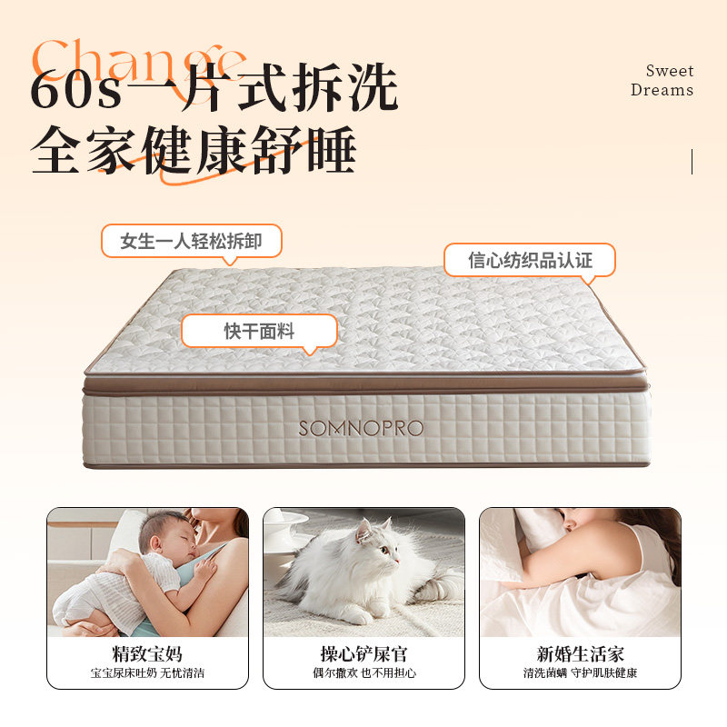 天猫穗宝记忆棉床垫可拆洗席梦思家用独立弹簧海绵软硬东方梦流光浮云
