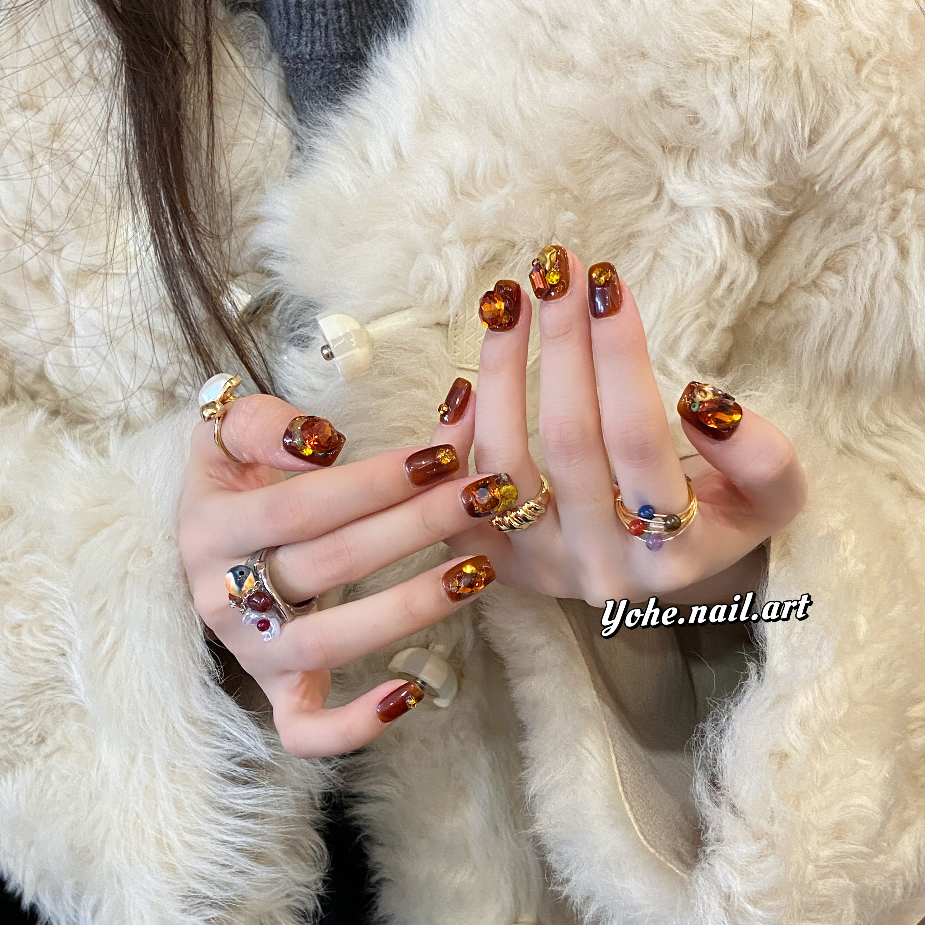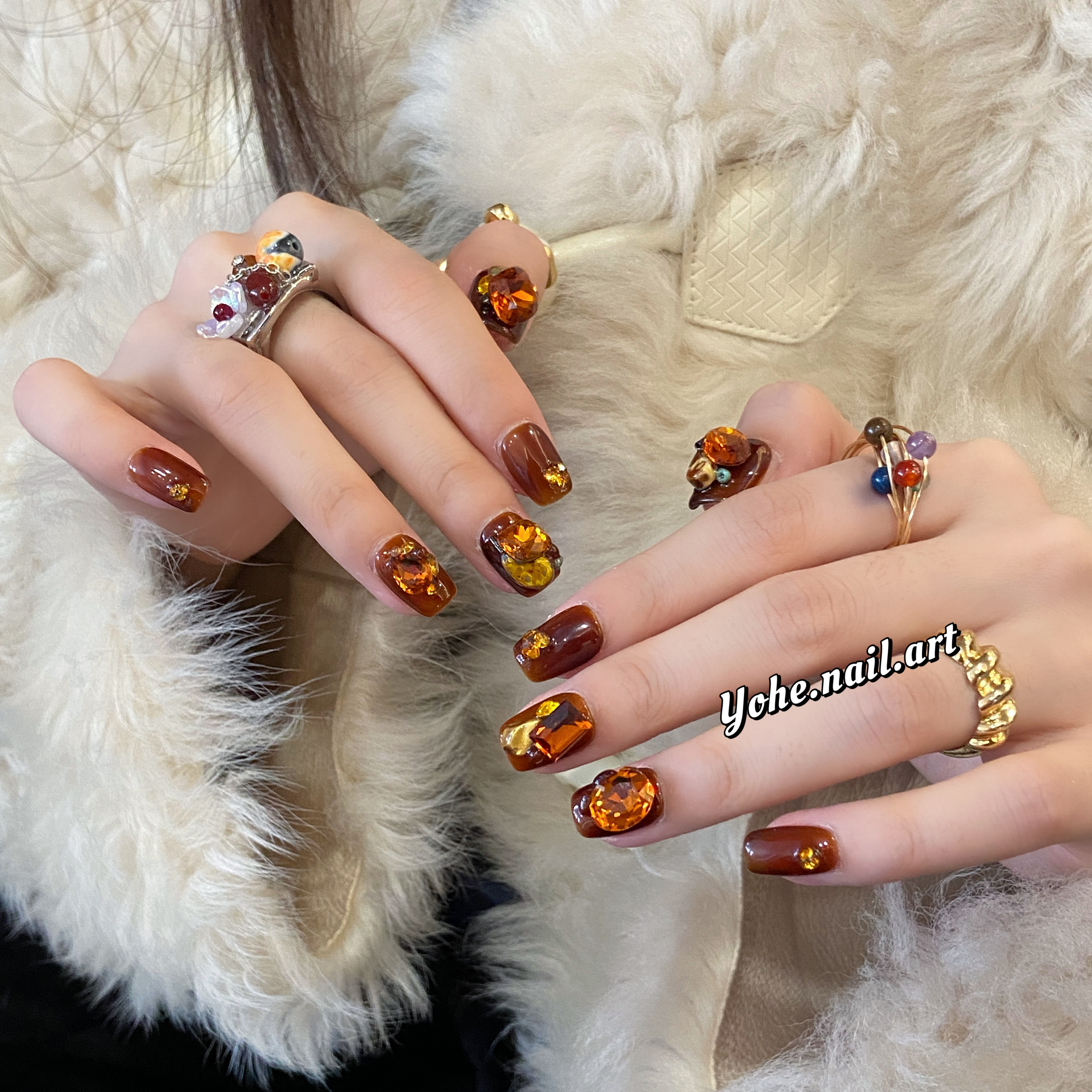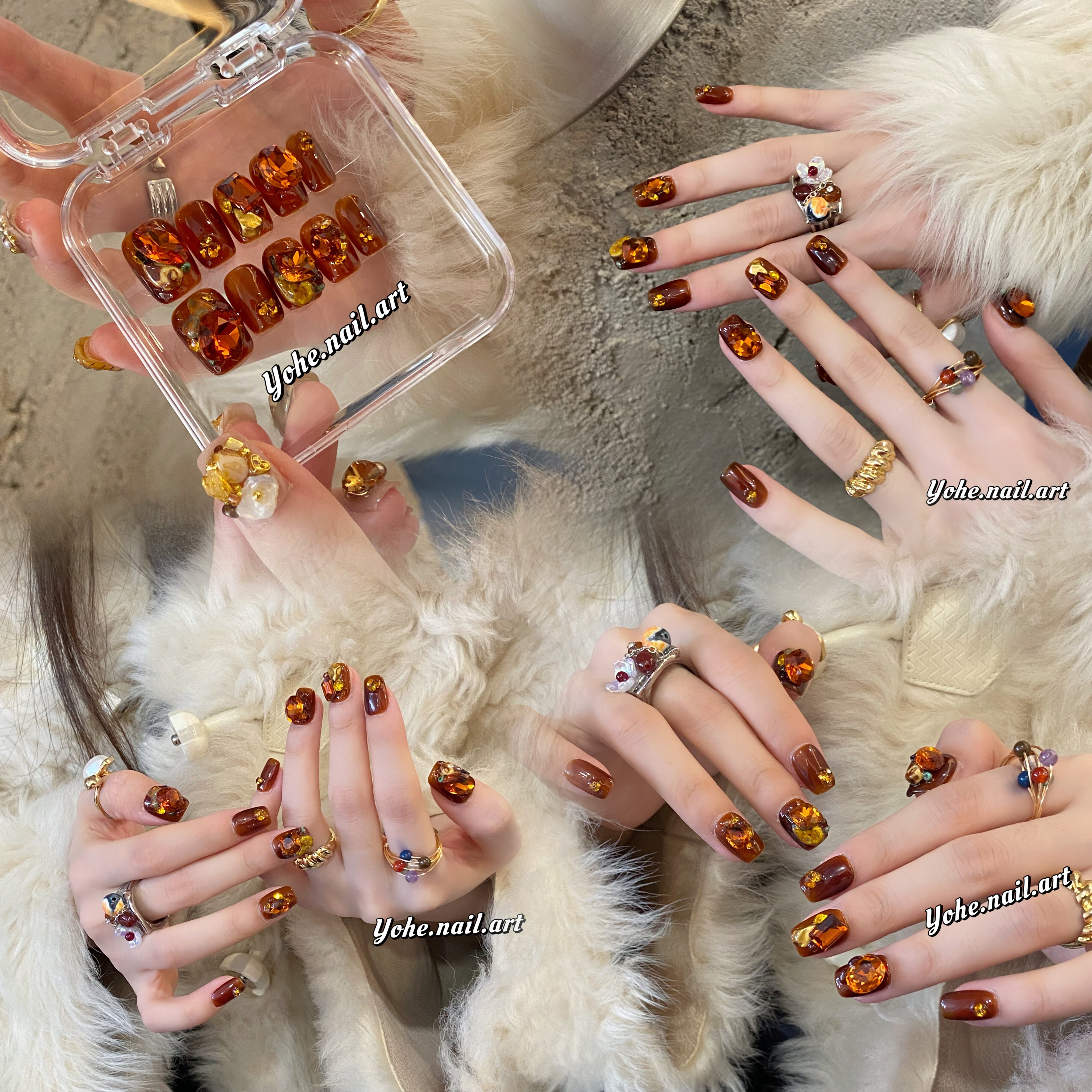 淘宝宥荷Studio 新年限定 糖太棕 穿戴甲美甲定制假指甲手工定制短甲
