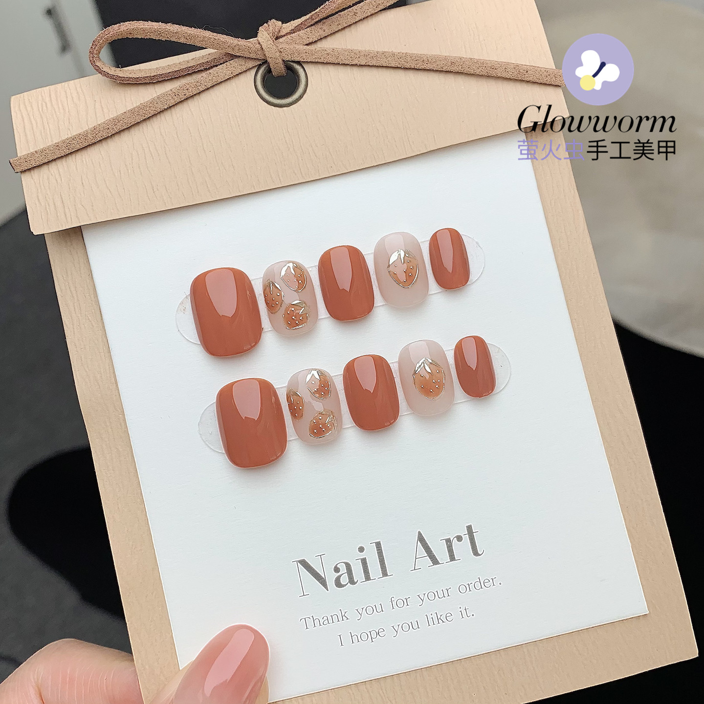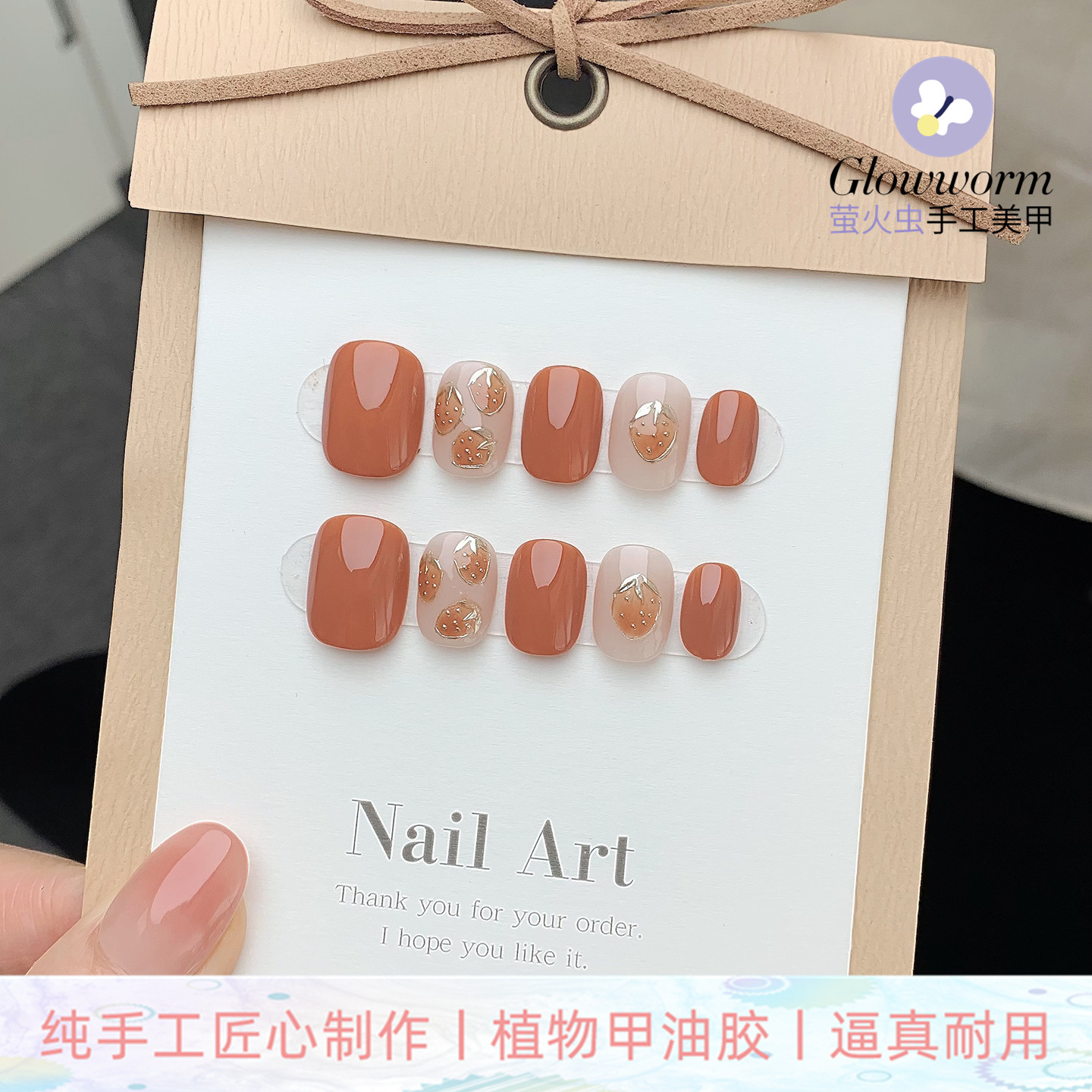 淘宝手工原创 手绘掐丝珐琅鎏金草莓美甲成品 持久可拆光疗穿戴甲片