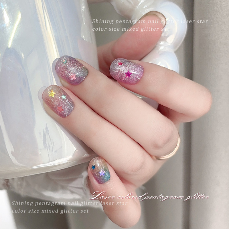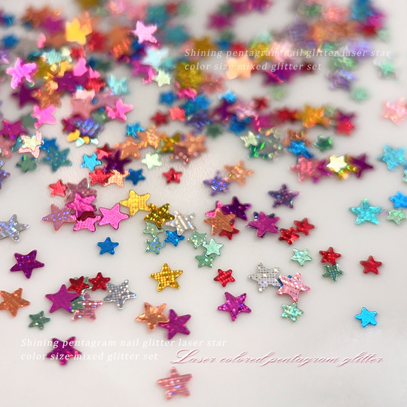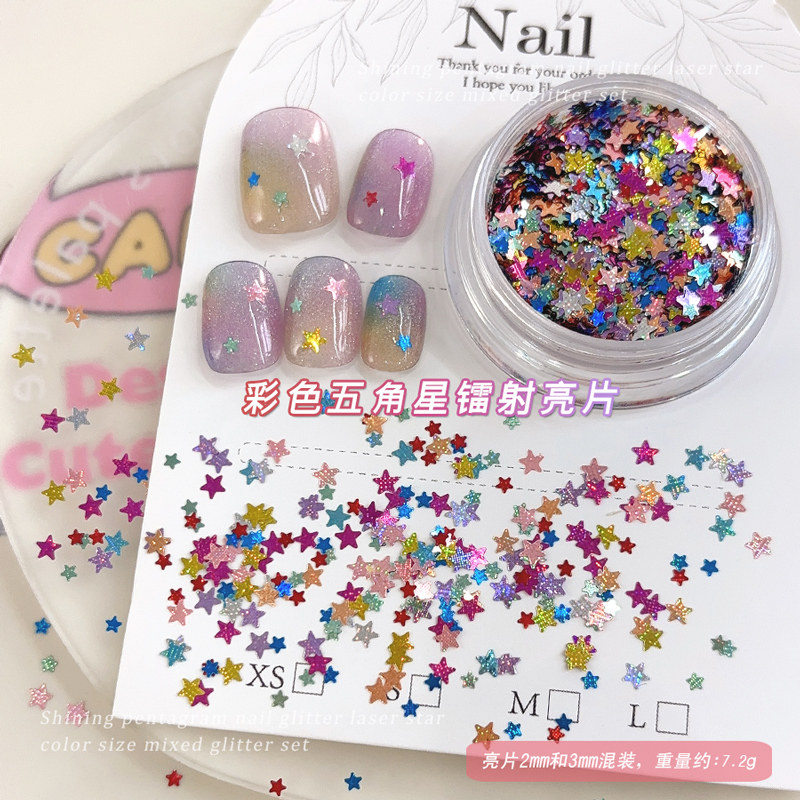 淘宝彩色五角星美甲亮片大小混装糖果色镭射星星亮片爆闪diy指甲配饰