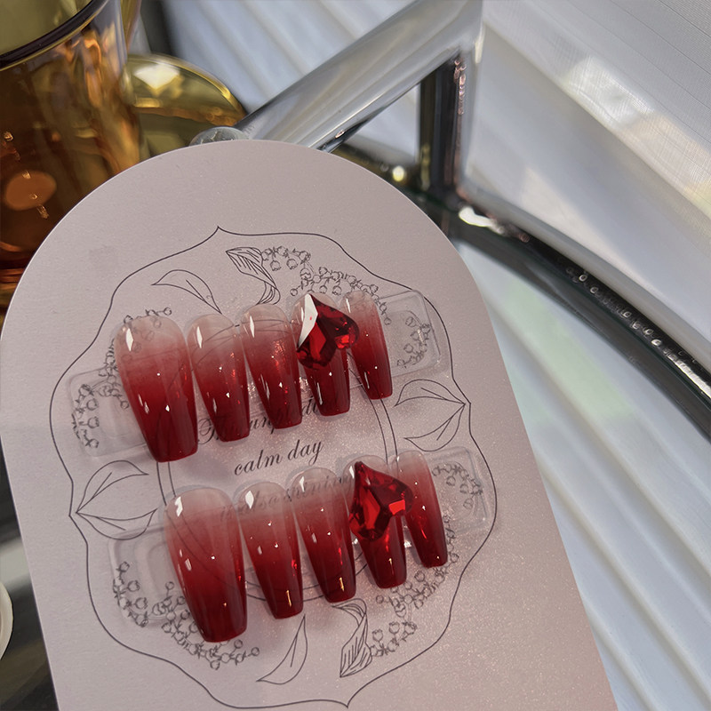 淘宝Lilynail轻奢宝石红冰透心心手工定制穿戴甲春季新款新娘美甲贴片