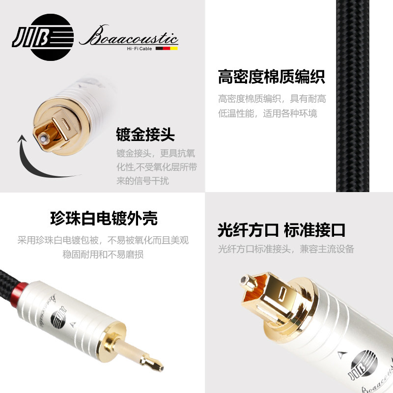 天猫JIB德国蟒蛇原装进口发烧级数字光纤3.5MM圆口专用转方口高聚光镀金接头音频线电视播放器接音箱BB109