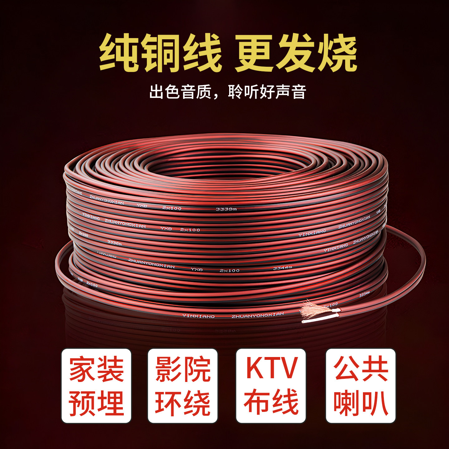 淘宝悠普仕200#工程音响线高保真音箱发烧线纯铜音频线延长喇叭金银线