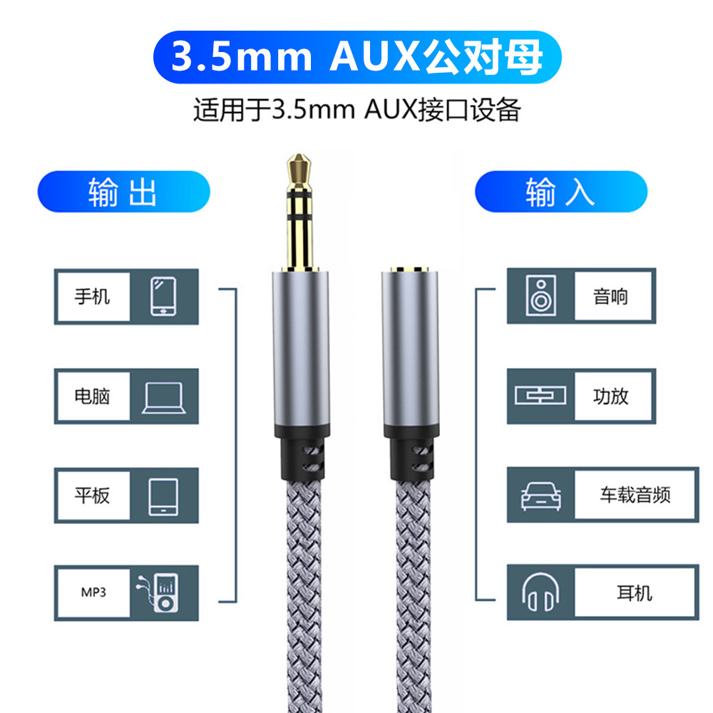 天秋叶原音频延长线3.5mm加长线通用aux插头公对母手机电脑耳机线材