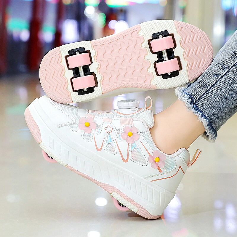 2025年新款暴走鞋女童款,专为活泼好动的孩子们设计,集时尚与安全于一体。这款儿童四轮飞行鞋采用轻盈耐磨材质,搭配隐藏式可收放轮滑系统,一键切换步行与滑行模式,让孩子轻松享受“飞行”乐趣。鞋底内置高弹减震结构,有效保护脚踝,提升滑行稳定性。炫彩LED灯随步伐闪烁,增添趣味与安全性。符合人体工学的鞋型设计,透气舒适,适合日常穿着或课外运动。无论是上学、逛街还是户外玩耍,这款隐形轮滑鞋都能让孩子在安全与酷炫之间自由切换,是2025年学生运动的新潮流选择。