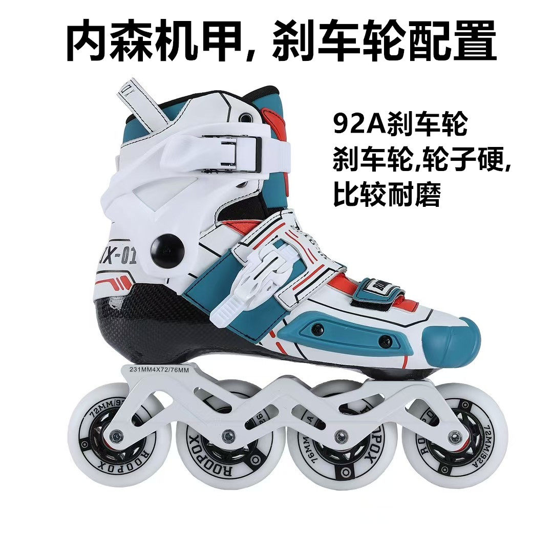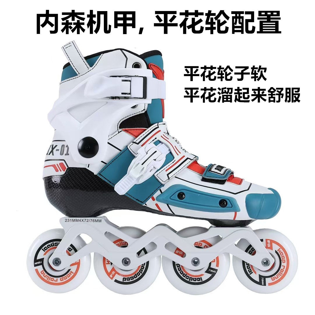 淘宝新款内森机甲碳纤平花刹车鞋HV轮滑鞋大橘溜冰鞋花式鞋直排轮成人