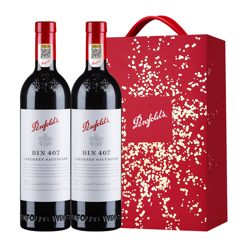 天猫【国行】奔富BIN407红酒礼盒装澳洲赤霞珠干红进口葡萄酒年货送礼