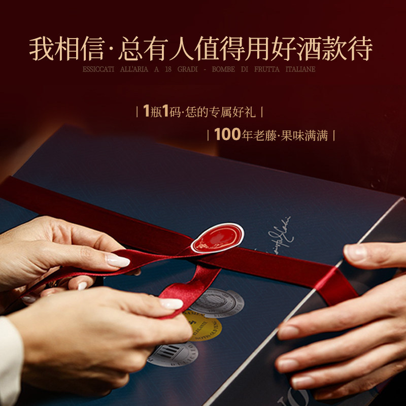 天猫意大利原酒进口红酒风干老藤干红葡萄酒过新年货送礼盒750ml*6瓶