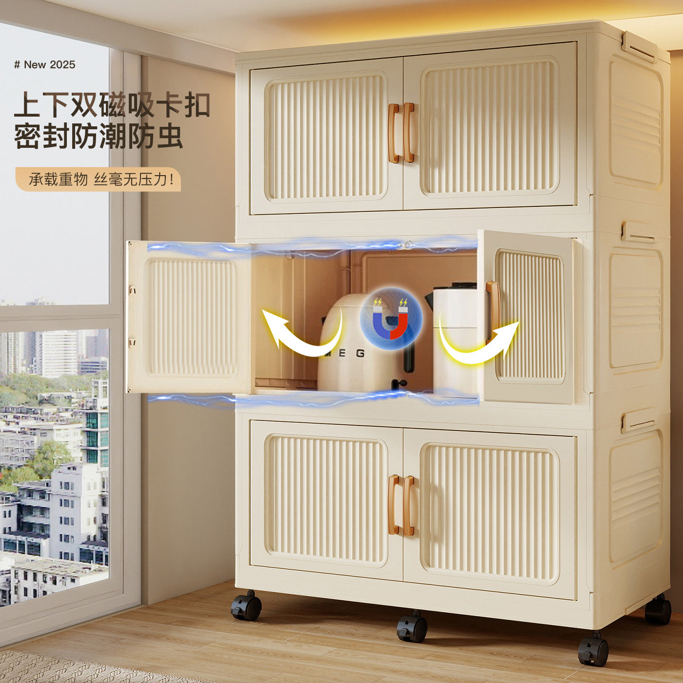 淘折叠收纳柜厨房置物架多层家用储物柜子客厅零食玩具免安装整理架