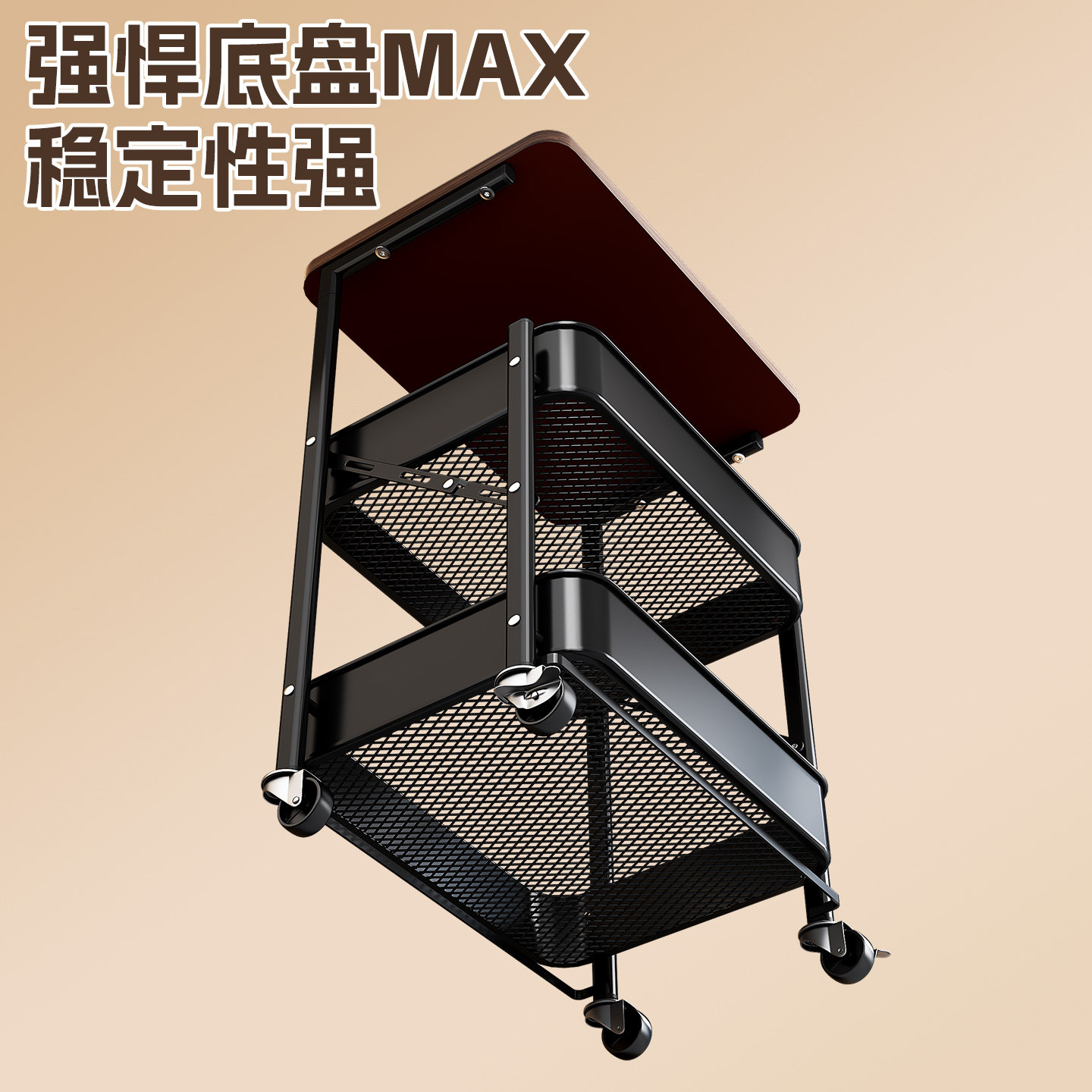 天猫中古折叠小推车置物架落地卧室床头柜收纳零食储物架茶几客厅边几