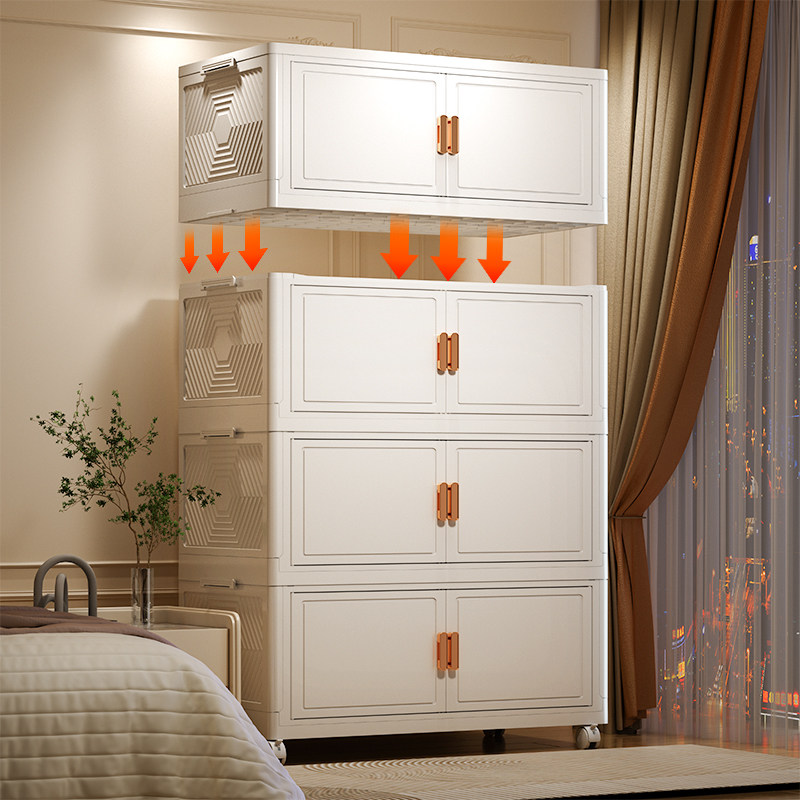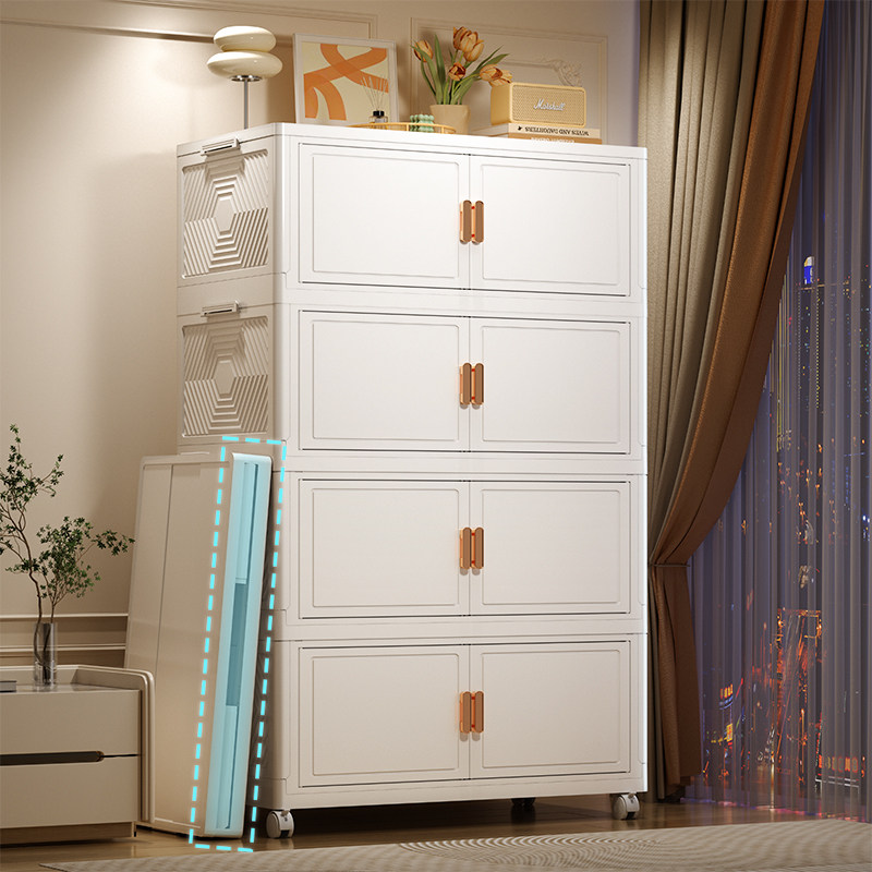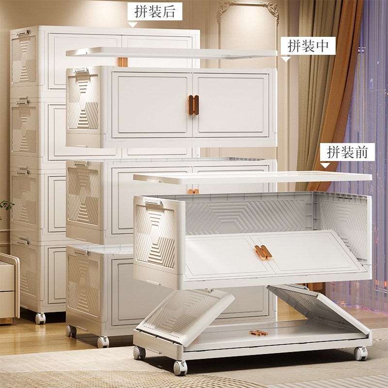 折叠储物柜家用客厅免安装收纳柜卧室宝宝衣柜多层婴儿带轮小衣橱