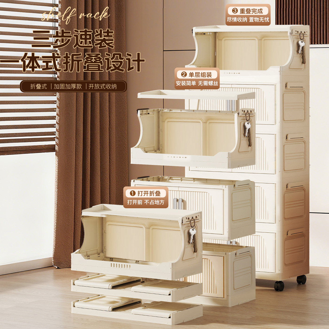 淘宝折叠收纳柜厨房置物架多层家用储物柜子客厅零食玩具免安装整理架
