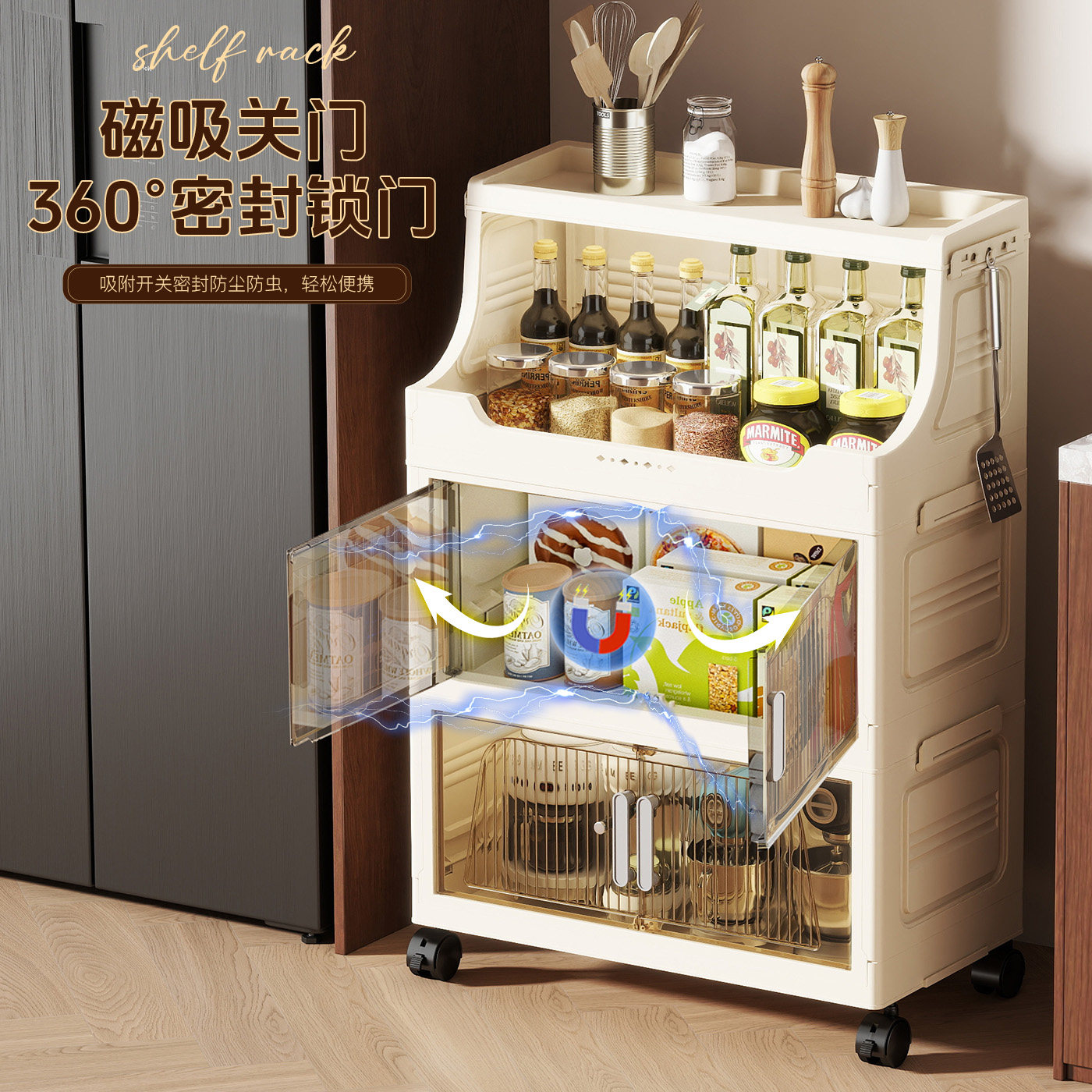 宝宝辅食奶瓶收纳柜喂养台多层可移动小推车置物架折叠餐具收纳箱