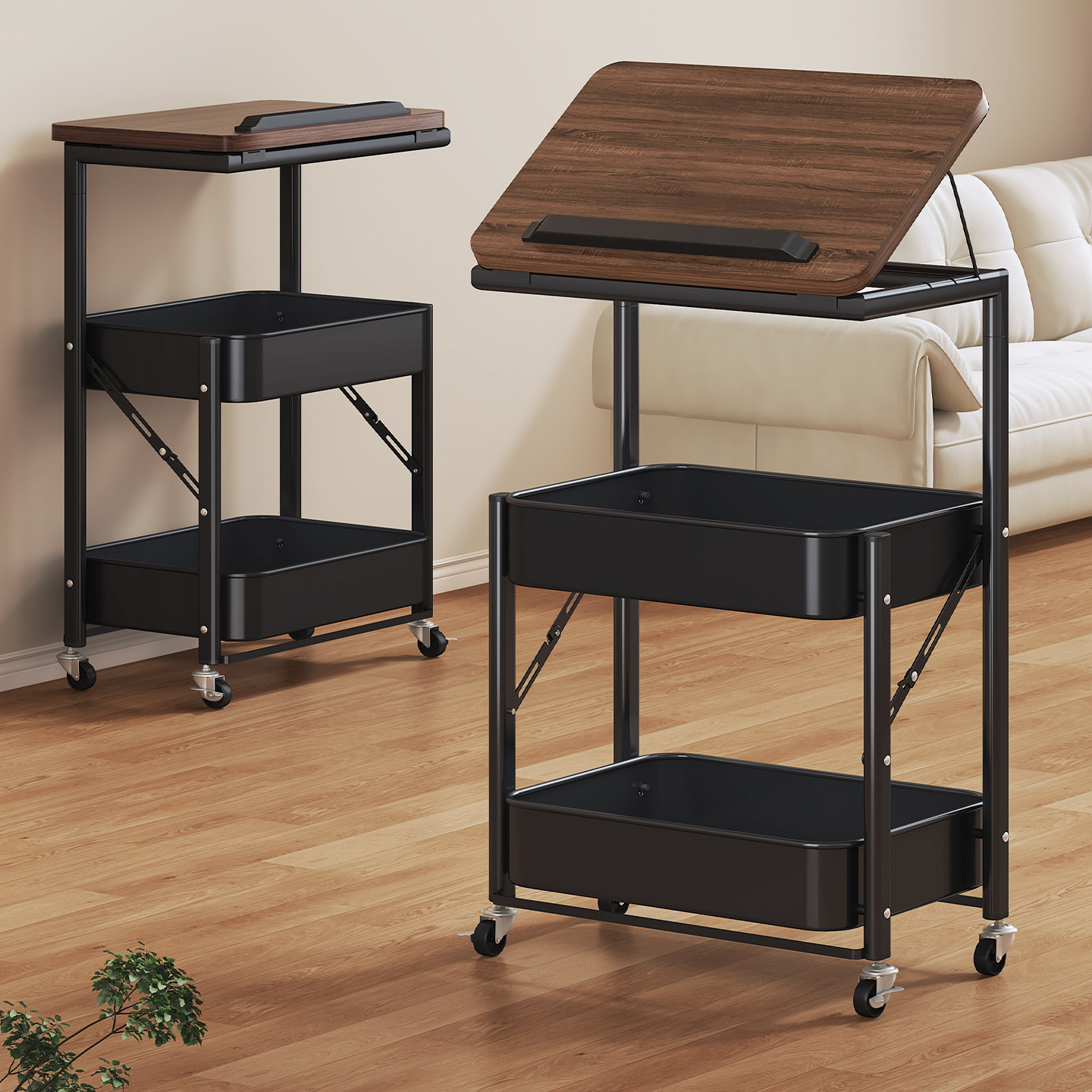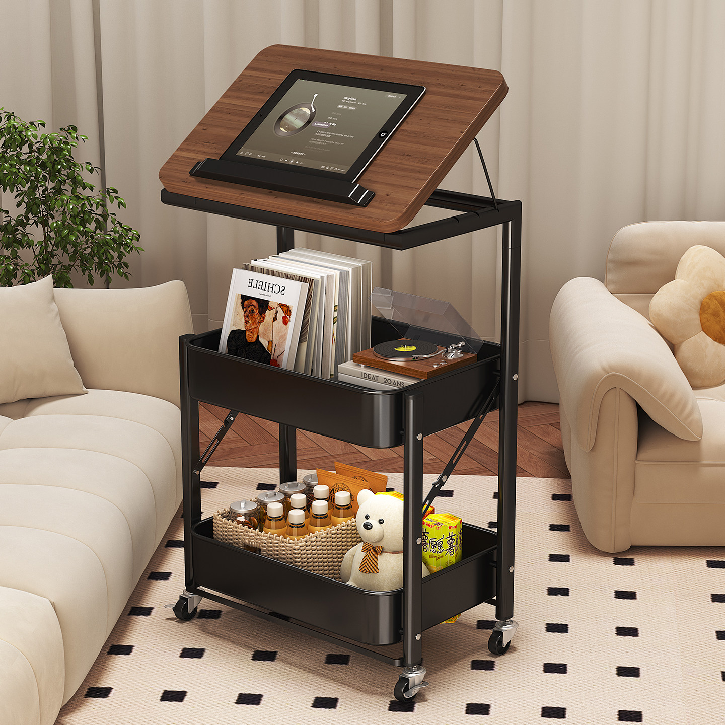 天猫中古折叠零食置物架落地客厅移动小推车边几卧室床头柜多层收纳架