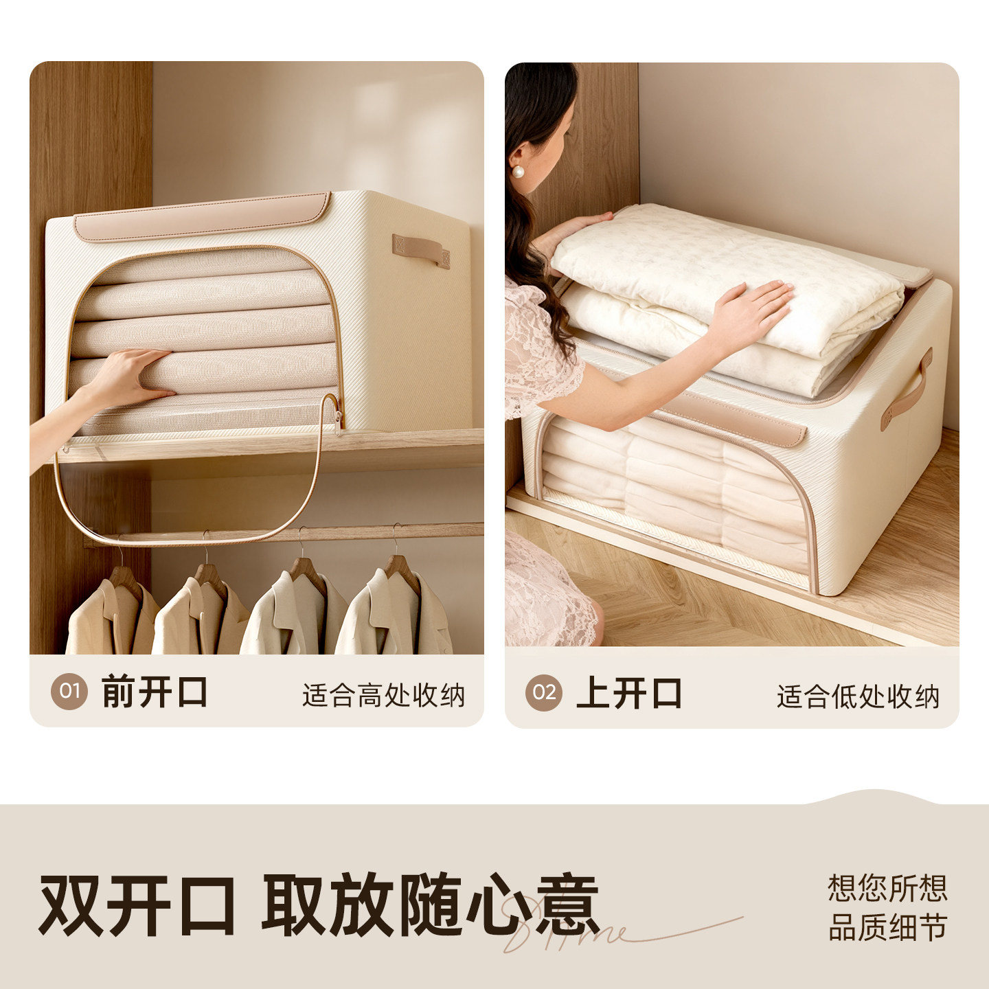 天棉麻衣柜带锁收纳箱家用整理筐防水储物盒子被子折叠大容量超大
