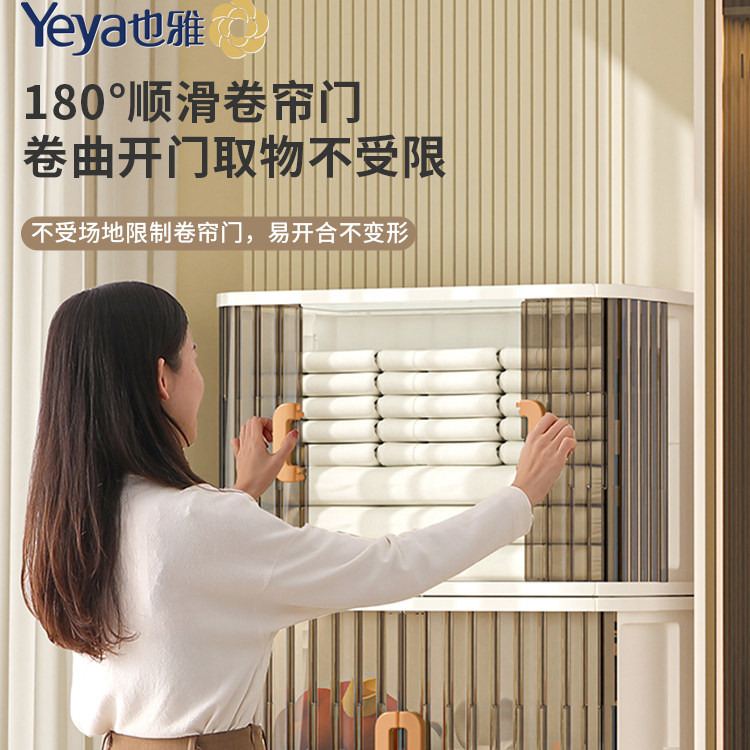 天猫也雅收纳柜茶色免安装大号折叠移动收纳箱户外储物柜翻盖置物衣柜