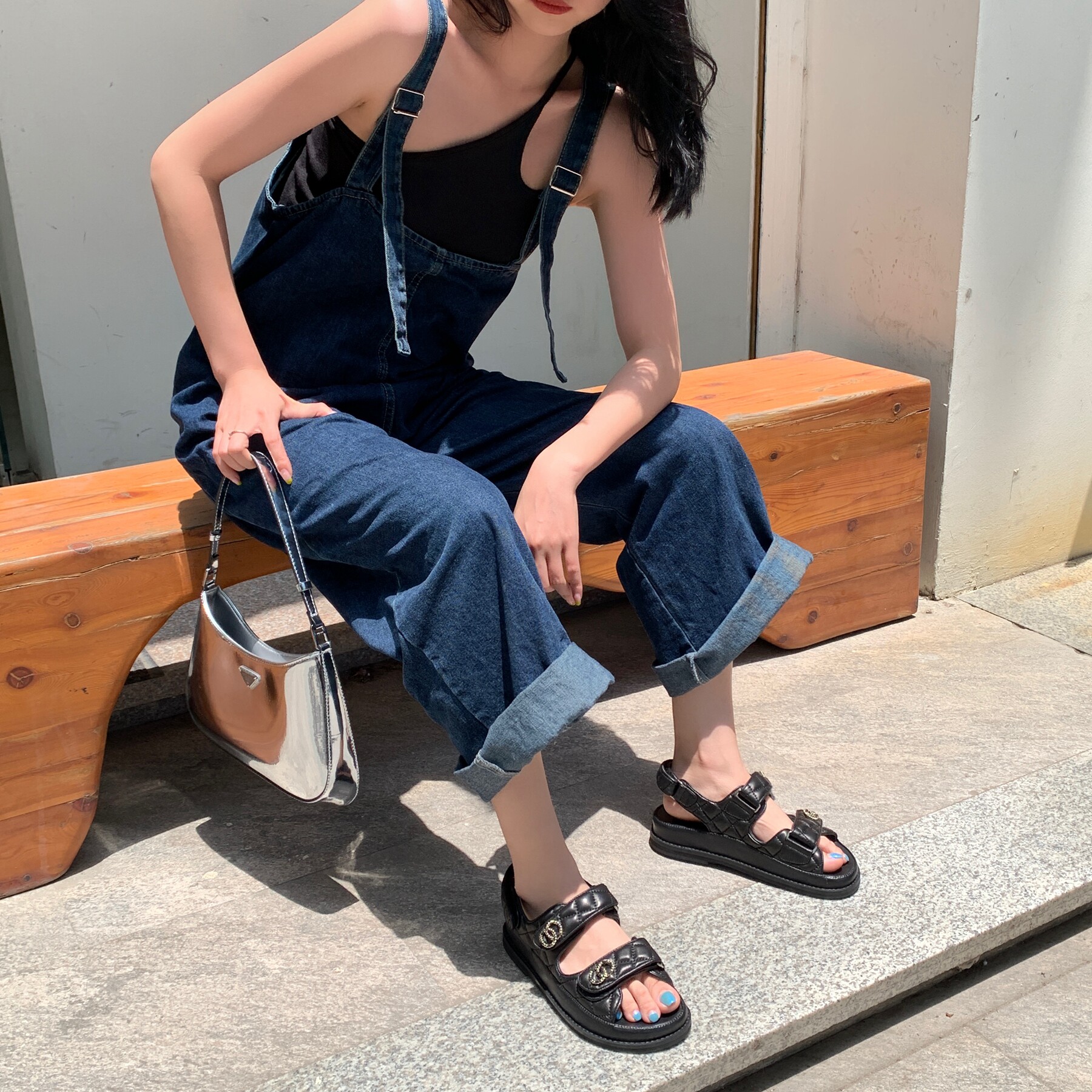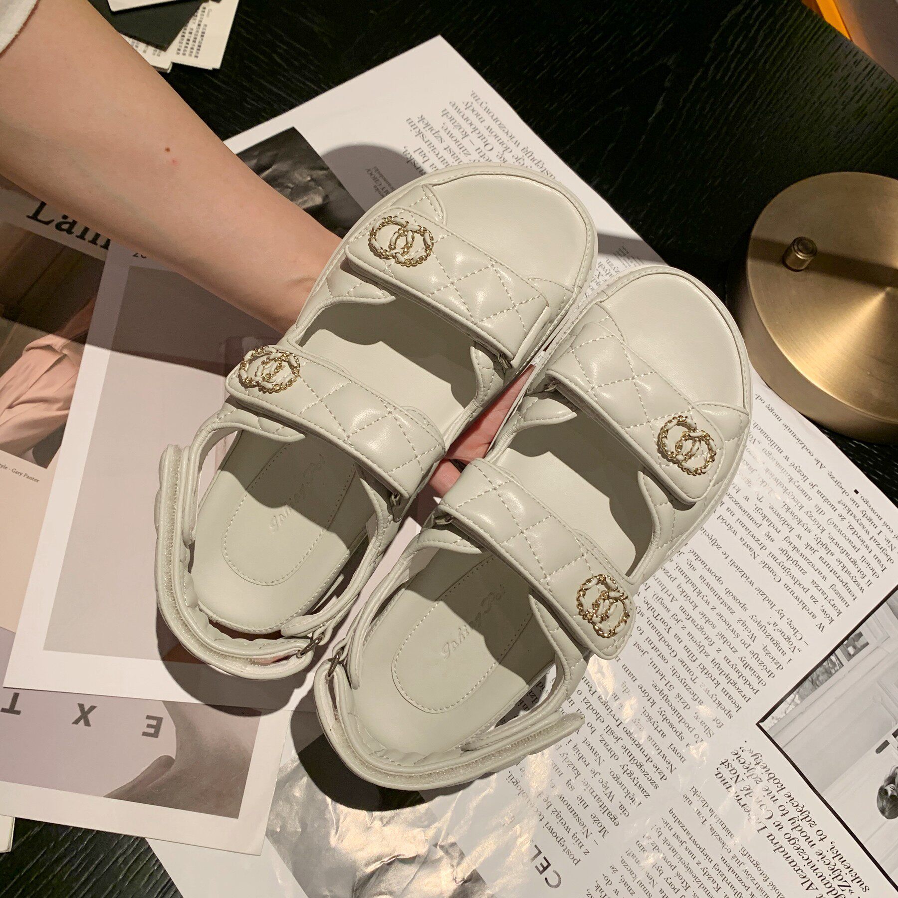 淘宝InkingPot彭姐 夏季小香风平底真皮菱格魔术贴厚底增高罗马凉鞋女
