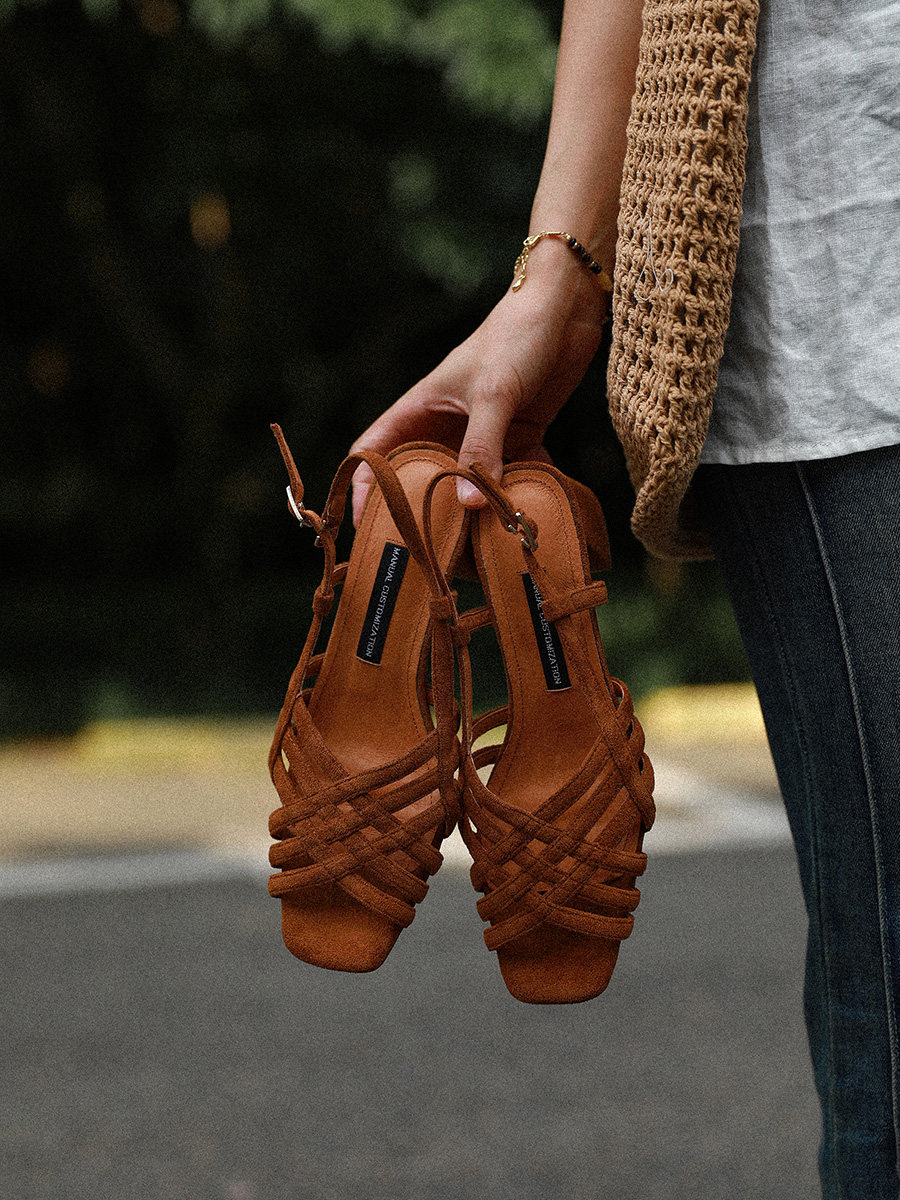 敦绿岛·南法假日系列法式复古罗马编织凉鞋,以慵懒浪漫的南法风情为灵感,融合经典鱼嘴设计与手工编织元素,打造文艺优雅的夏日足间艺术。粗跟中跟设计兼顾舒适与造型感,行走稳健不失轻盈。精选优质皮革,质感细腻,透气亲肤,搭配编织绑带勾勒脚踝线条,复古中透出法式随性魅力。无论是搭配碎花裙、阔腿裤,还是简约度假风装扮,皆能轻松演绎浪漫文艺气息。敦绿岛以匠心工艺诠释法式美学,让每一步都如漫步普罗旺斯的午后,自在惬意,尽显女性温柔力量。