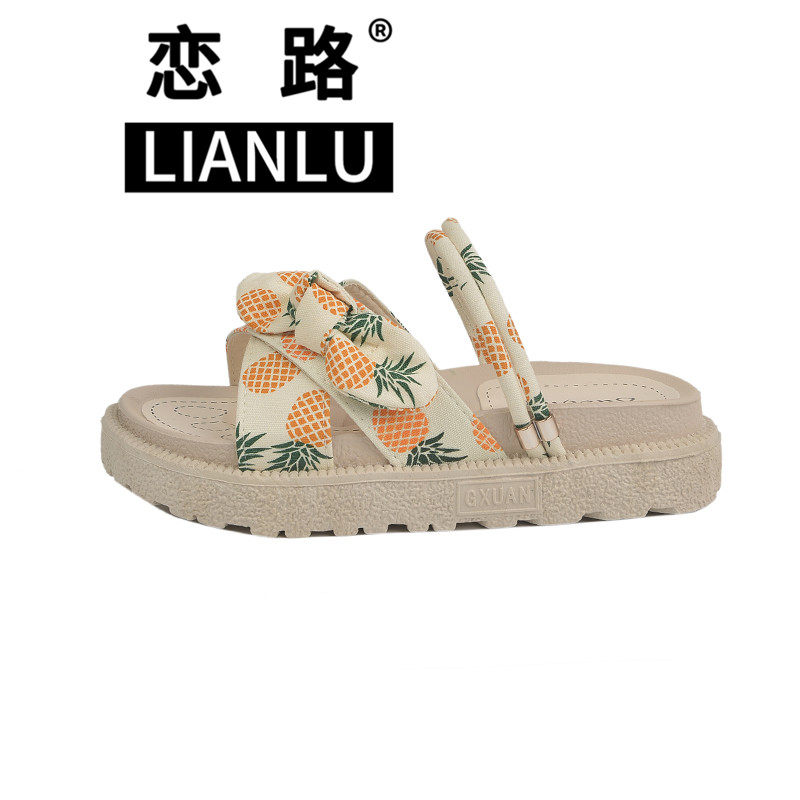 天斯凯奇夏季女子蝴蝶结时尚凉鞋简约休闲鞋沙滩鞋百搭平底凉拖潮流
